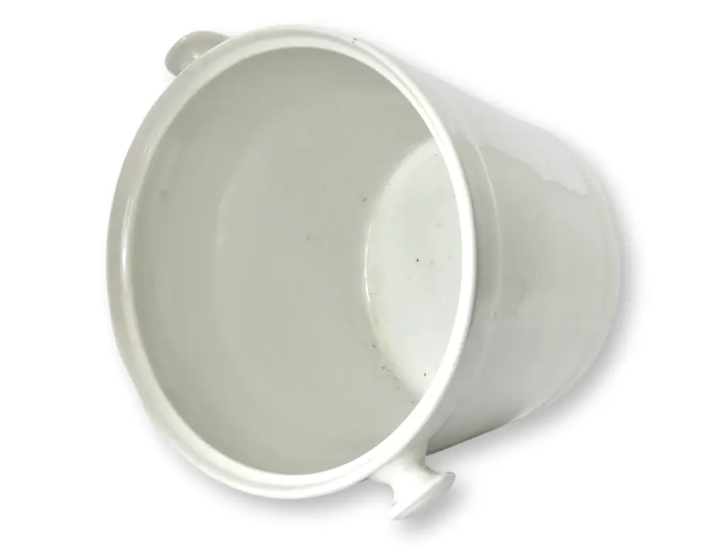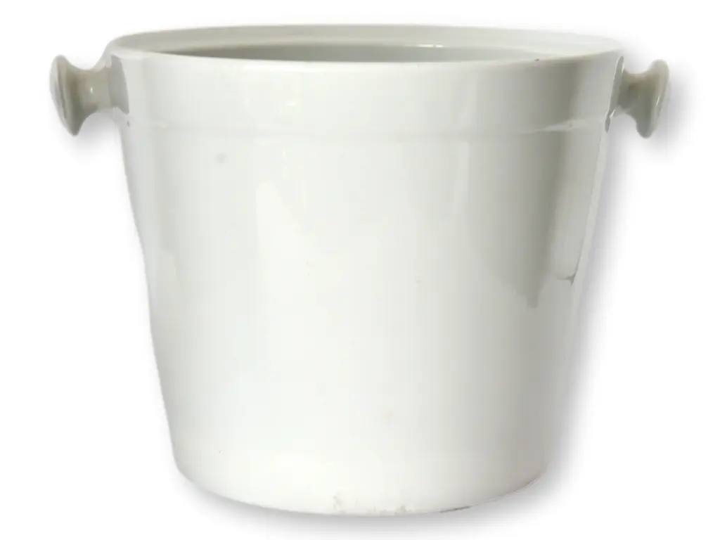 Large White Ironstone bottle cooler, made in England circa 1880. This timeless piece stands out due to its pristine white finish and robust ironstone construction, offering a durable yet stylish solution for chilling your beverages. Vintage charm and classic design make it a remarkable and versatile addition to any table setting. Large enough to comfortable hold 3 normal champagne bottles or a magnum and a normal size. No maker's mark.