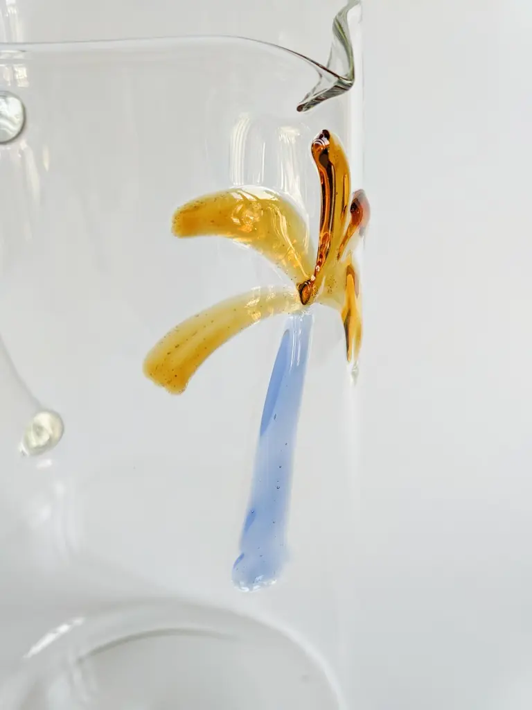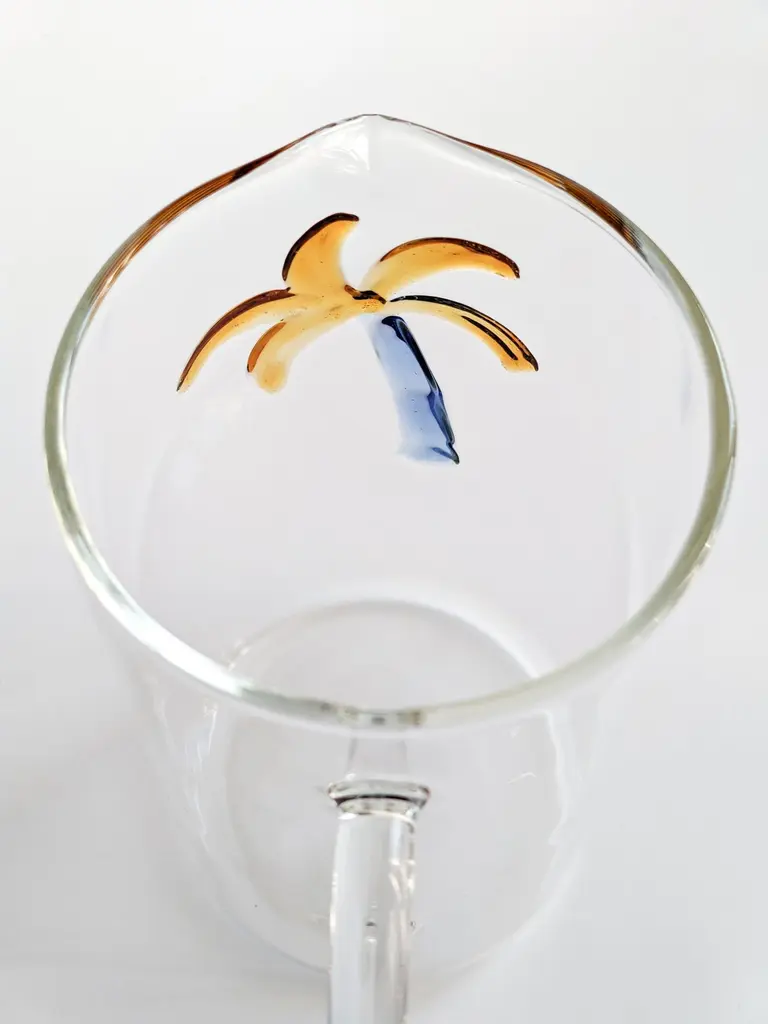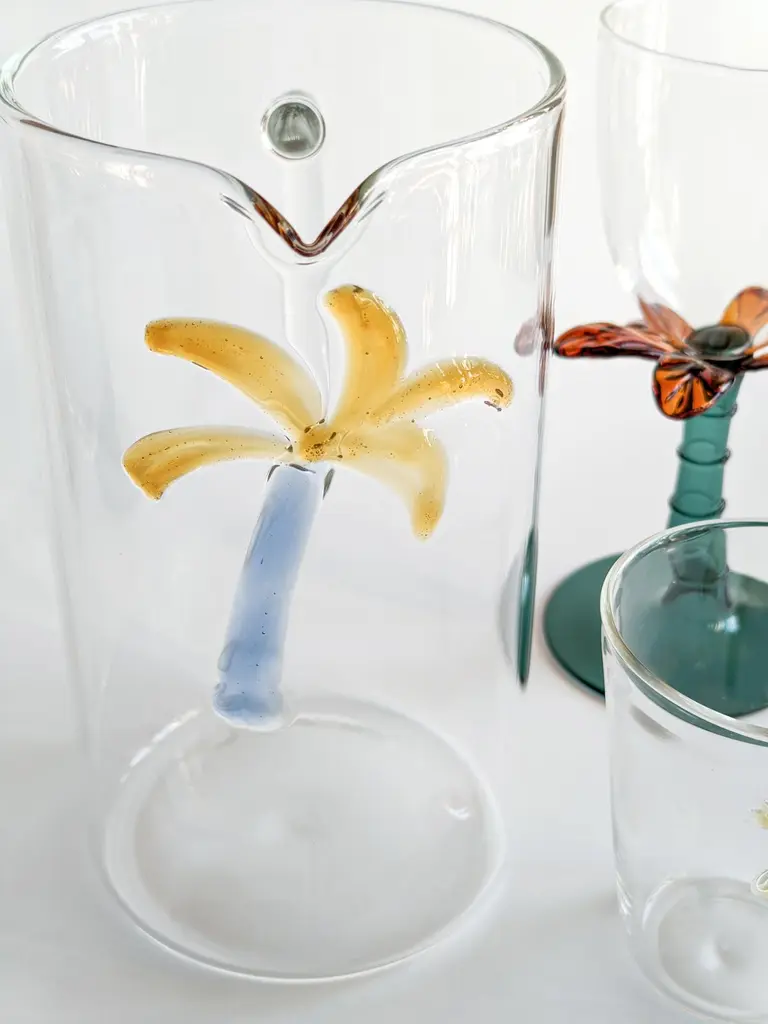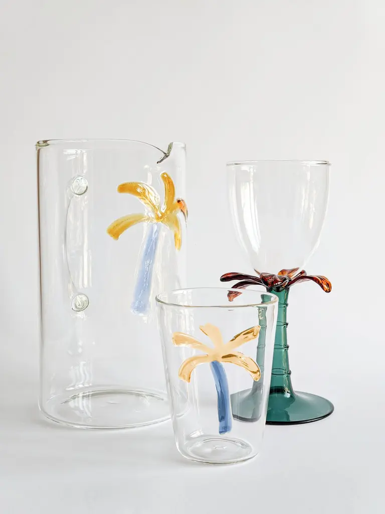 Las Palmas glasses are a collection of Made in Italy blown glasses and a pitcher. Every piece is unique and embellished with palm inspired decoration.Pitcher.