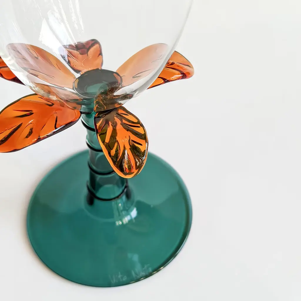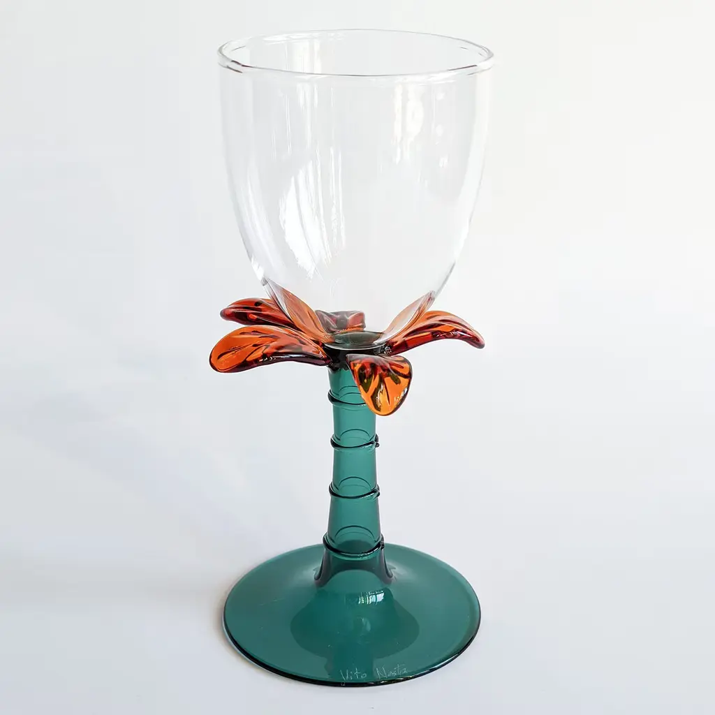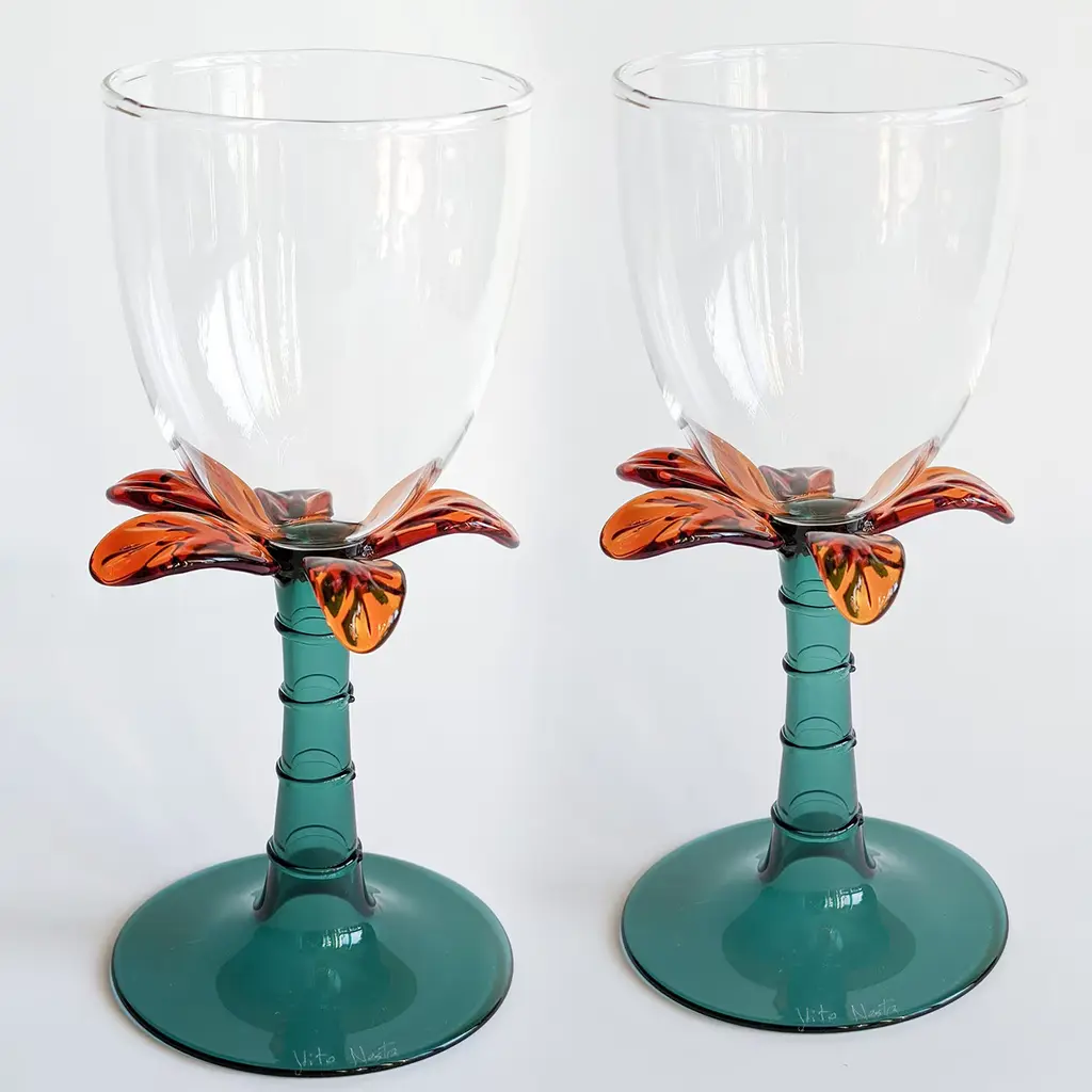 Las Palmas Set Of 6 Blown Glass Wine Glasses With Palm Tree Shape