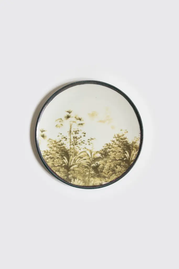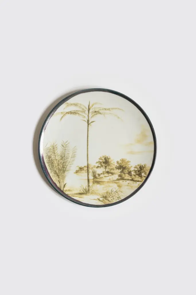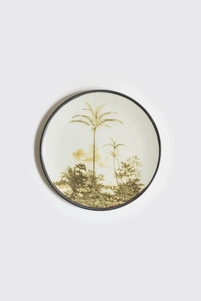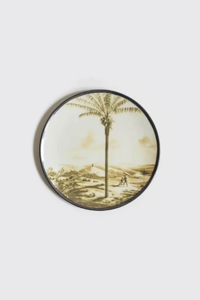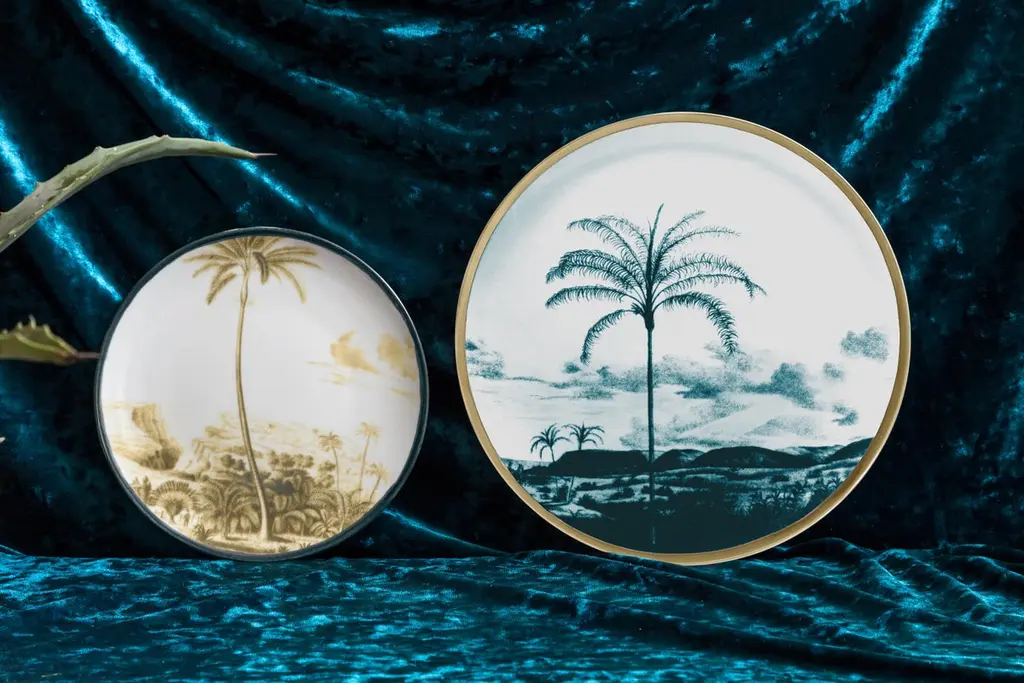 The Las Palmas Porcelain Collection owes its name to the city of Palmas, in Brazil. It is a true tribute to palm trees, whether it is their leaves, the whole plant, or even the landscape in which they live and thrive. The varied species represented on these exotic plates, characterized by two colors, blue and golden yellow, lend their shapes to create a dreamy and vibrant imagery, suitable for any setting, from the most formal to the most elegant.Set of 6 dessert Plates