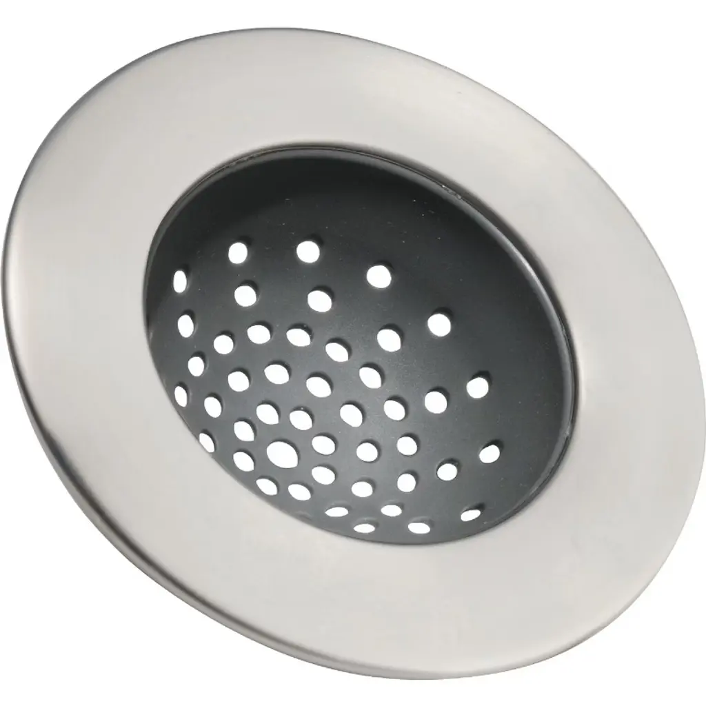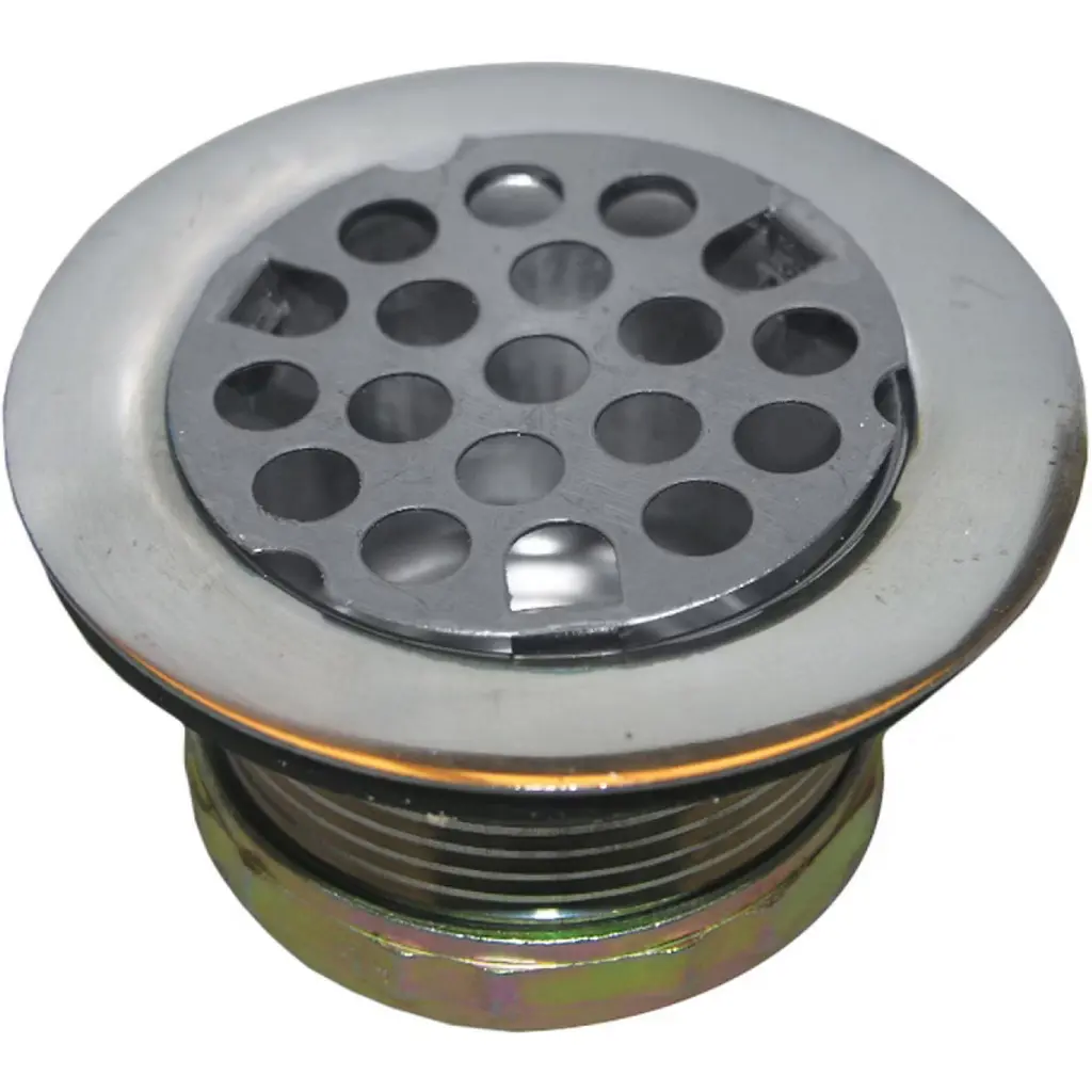 Chrome plated crumb cup strainer for bathroom and shower application.