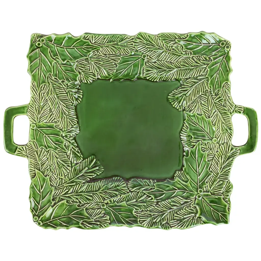 Lastra Holiday Green Figural Handled Rectangular Platter