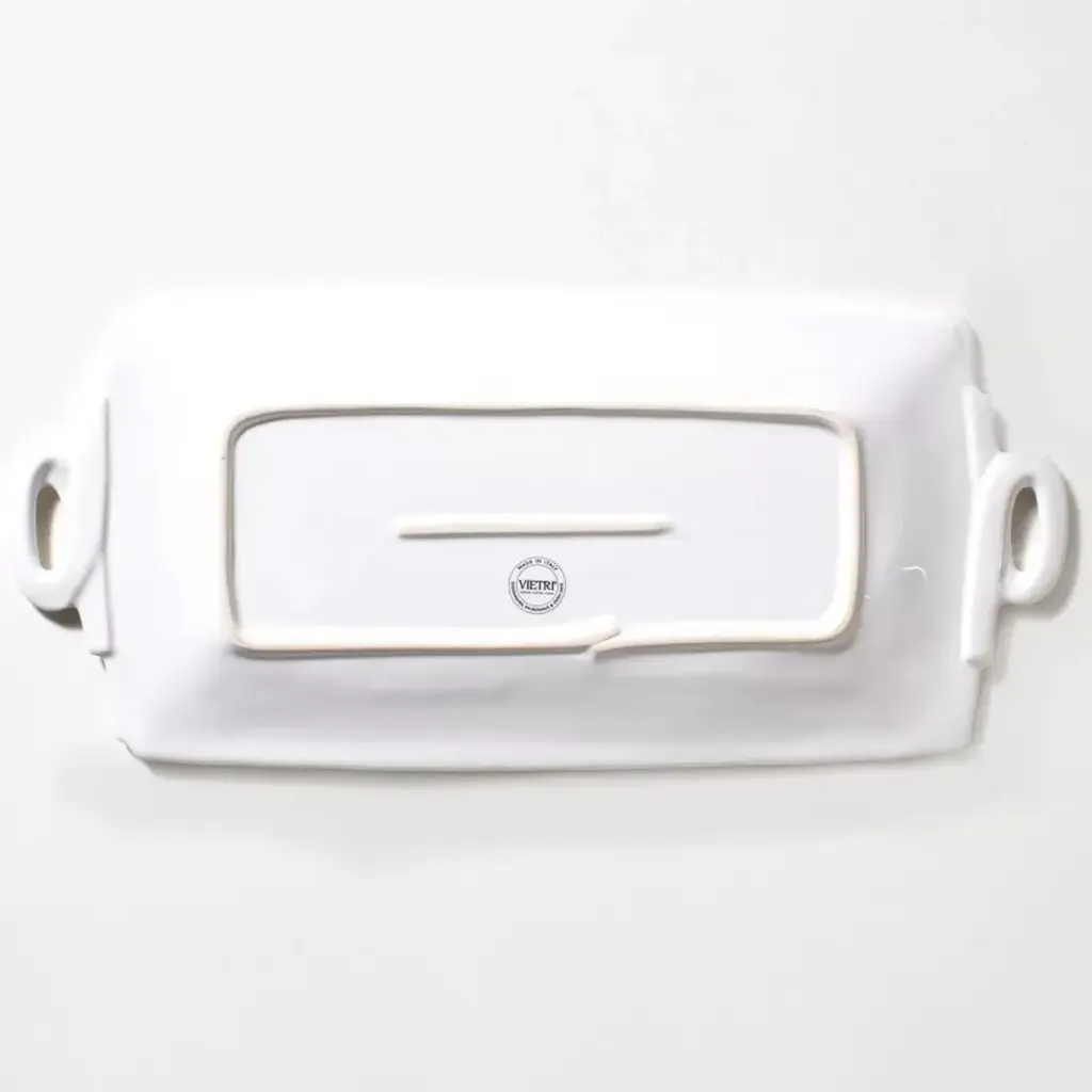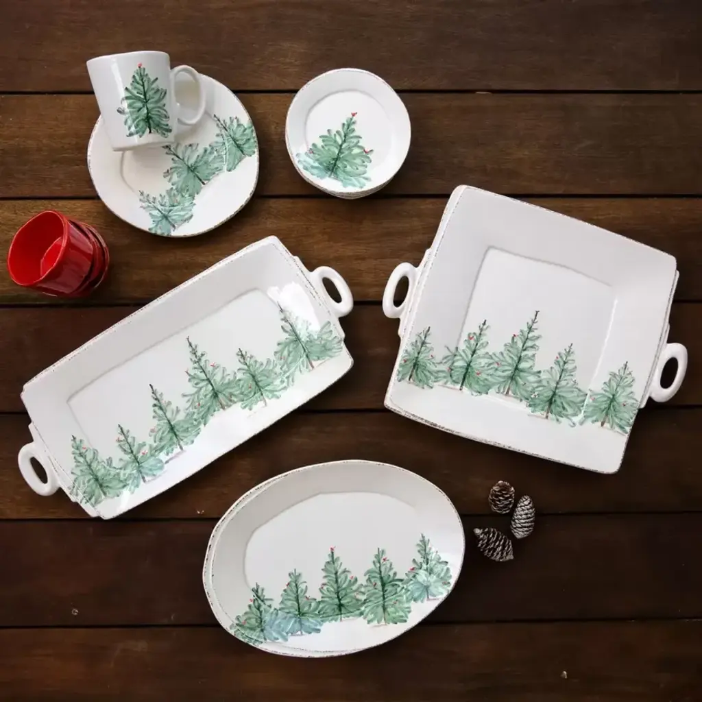 Host your annual holiday get-togethers in Italian style when you serve an assortment of fresh baked cookies on the Lastra Holiday Handled Rectangular Platter. Handpainted on Italian stoneware in Tuscany, this collection adds a festive touch to any winter gathering. Since 1983, Vietri has specialized exclusively in Italian handcrafted ceramics, stainless and pewter flatware, mouth blown glassware, lamps, urns and planters. Families of artisans with 3 or 4 generations of history create these special pieces using centuries-old techniques. The subtle color from a paintbrush and the curving stroke of the artist's hand are never repeated in quite the same way, making each piece truly unique.