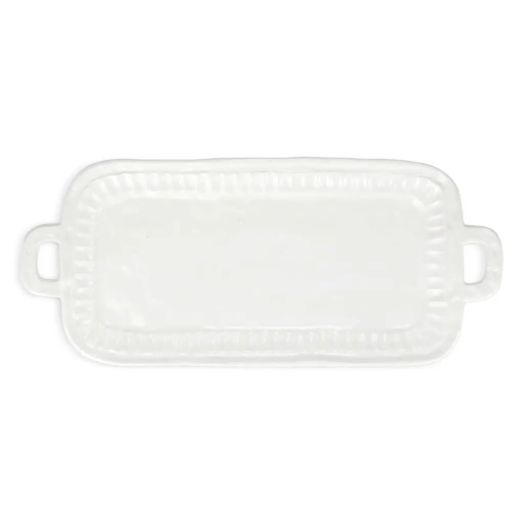 The rustic yet chic shape of the Lastra Handled Square Platter looks clean and sophisticated on your table. An overlapping wooden mold, used for centuries to form cheeses throughout Italy, inspired this collection. Since 1983, Vietri has specialized exclusively in Italian handcrafted ceramics, stainless and pewter flatware, mouth blown glassware, lamps, urns and planters. Families of artisans with 3 or 4 generations of history create these special pieces using centuries-old techniques. The subtle color from a paintbrush and the curving stroke of the artist's hand are never repeated in quite the same way, making each piece truly unique.