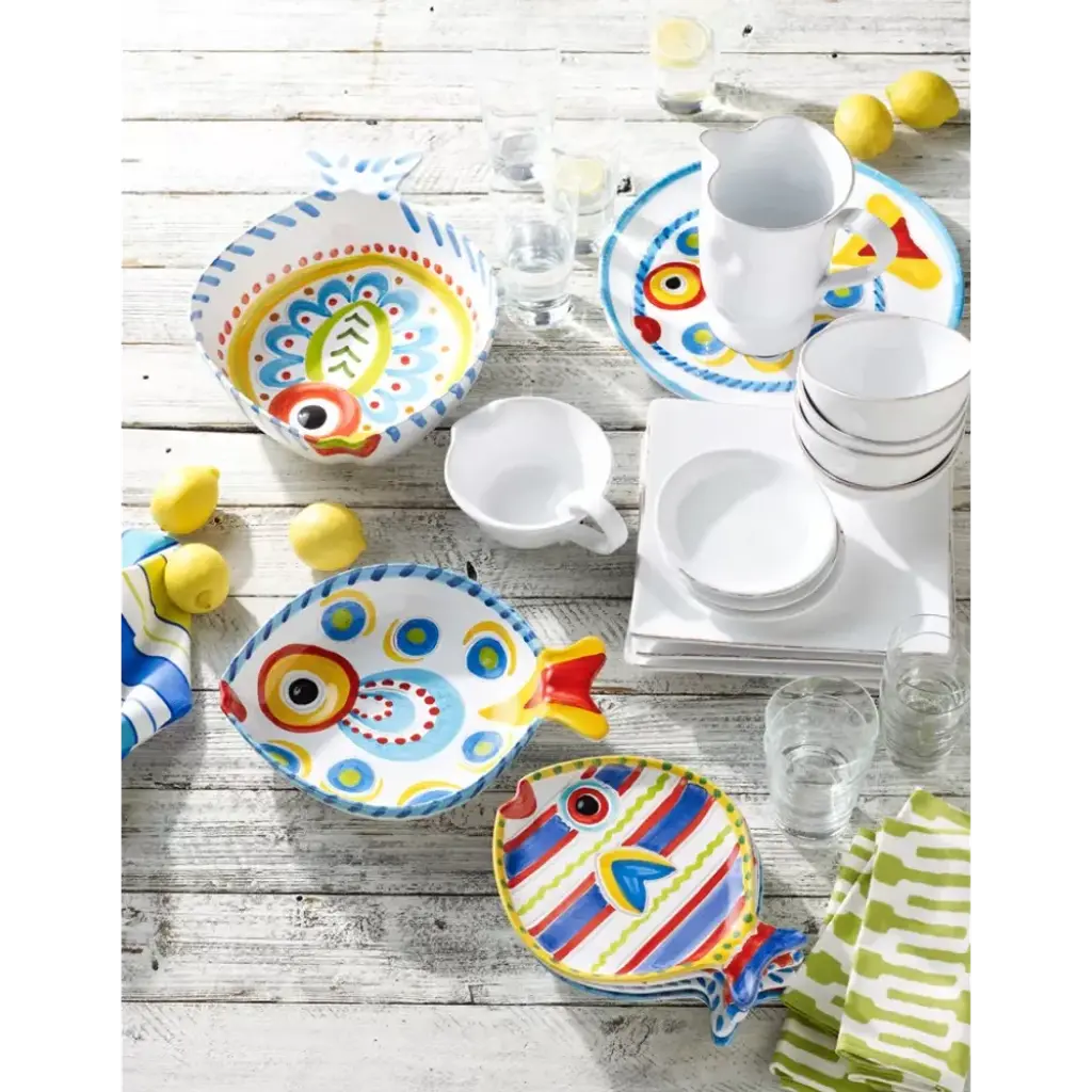The Lastra White Medium Stacking Serving Bowl allows for easy and efficient baking. Whip up a batch of your grandmother's homemade chocolate chip cookies with ease in this handcrafted piece made of Italian stoneware in Tuscany. Since 1983, Vietri has specialized exclusively in Italian handcrafted ceramics, stainless and pewter flatware, mouth blown glassware, lamps, urns and planters. Families of artisans with 3 or 4 generations of history create these special pieces using centuries-old techniques. The subtle color from a paintbrush and the curving stroke of the artist's hand are never repeated in quite the same way, making each piece truly unique.