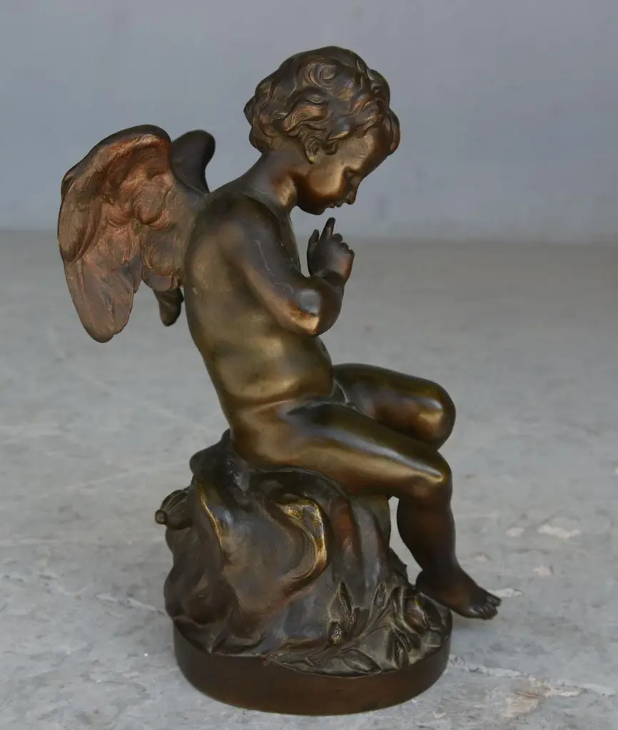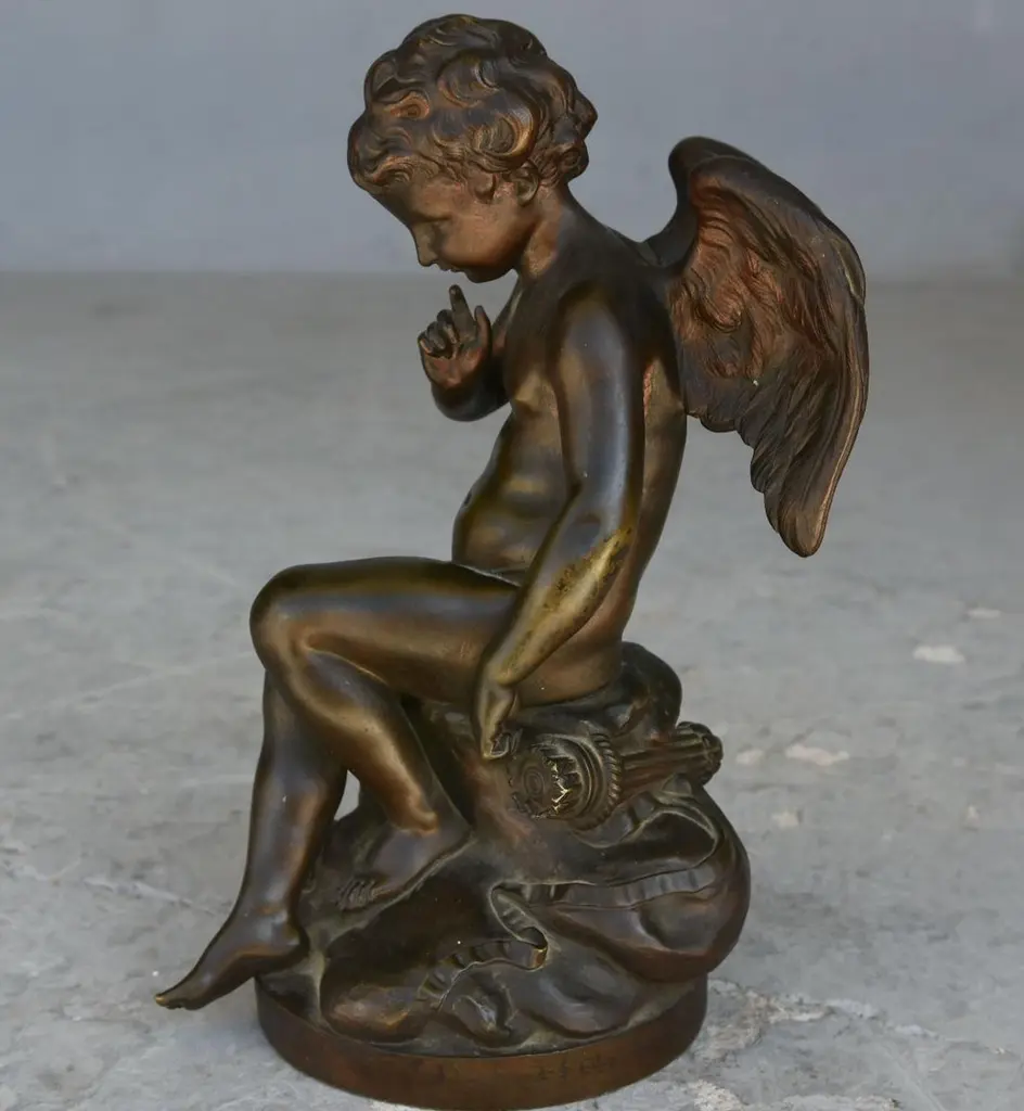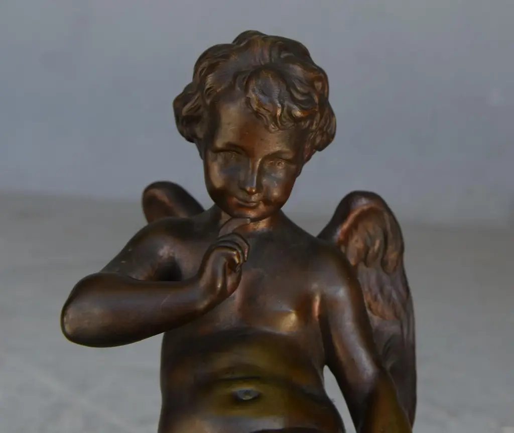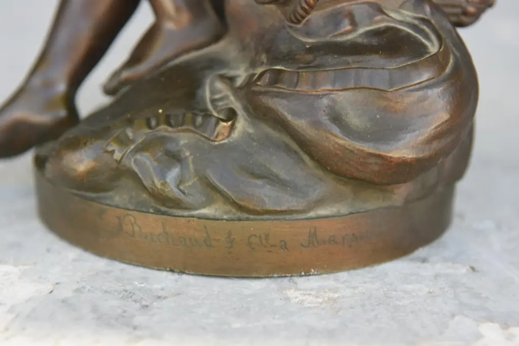 Late 19th century cupid bronze patinated gilded dimension: 27 cm high by 15 cm by 12 cm. Founder Richaud et Cie in Marseille. Model after Falconet.