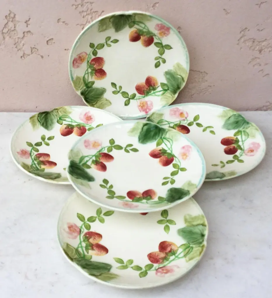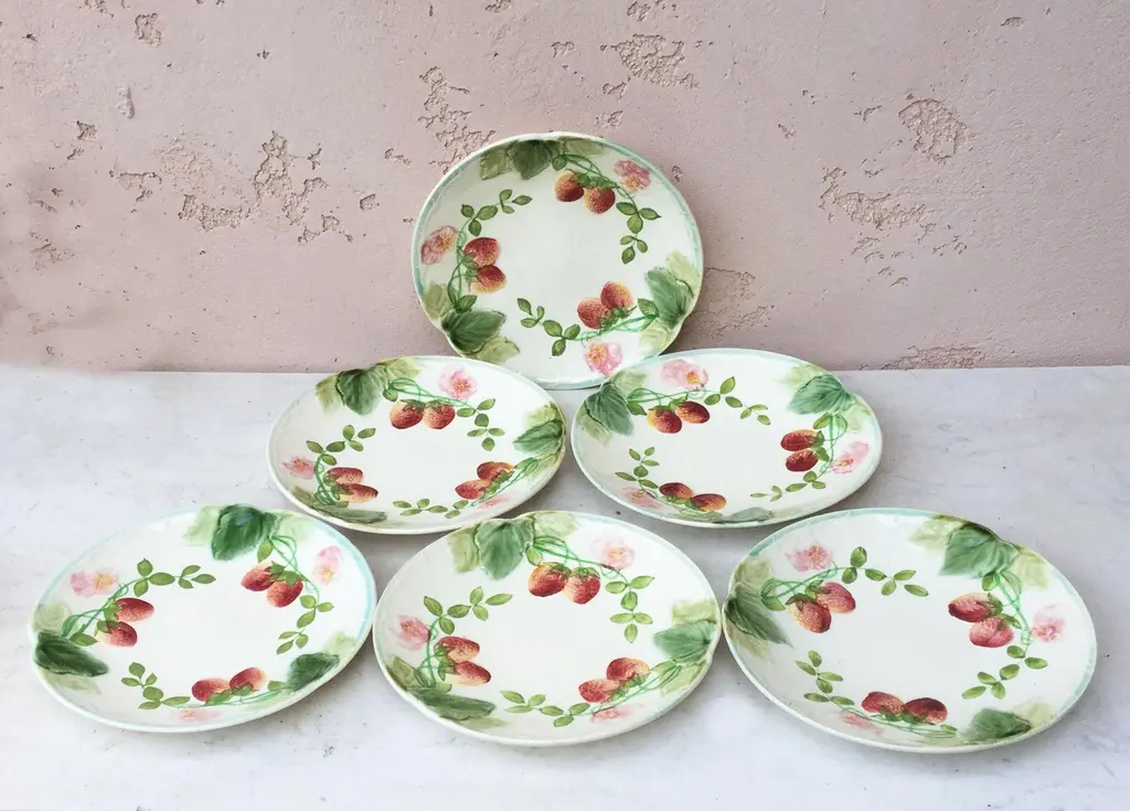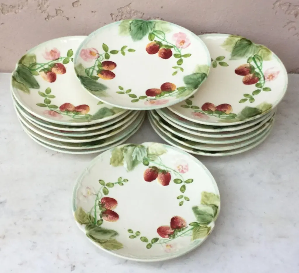 Majolica strawberries plate Choisy le Roi, circa 1880. 13 plates available.