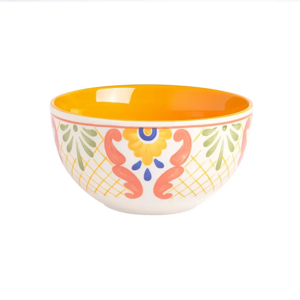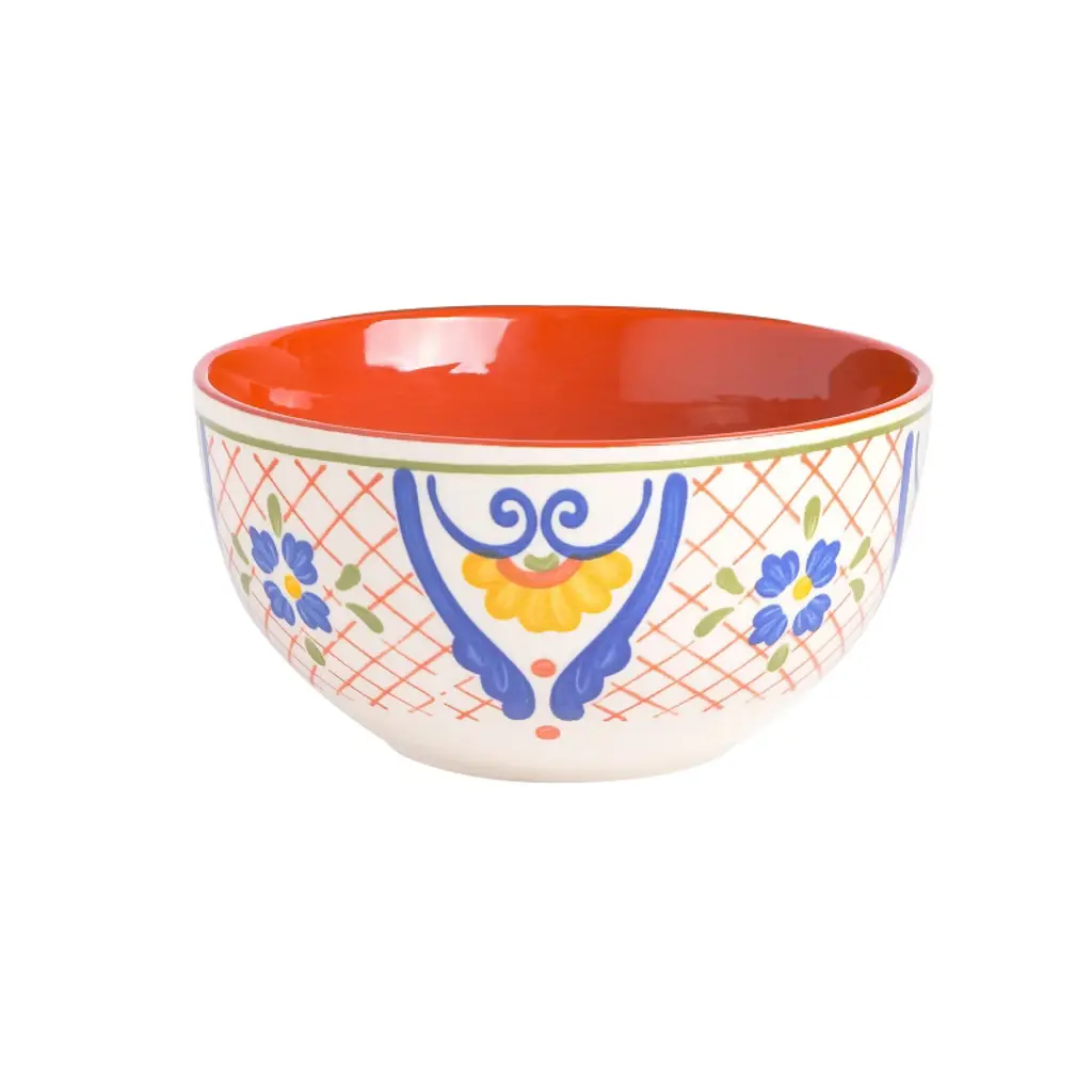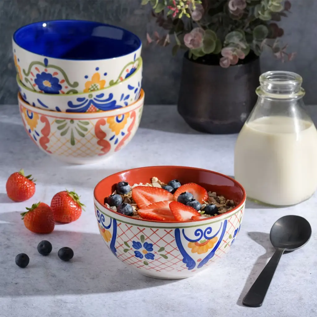 The Laurie Gates Tierra 4 Piece 6 Inch Stoneware Cereal Bowl Set in Assorted Designs welcomes anyone to the table with a warm embrace. Every bowl features it's own unique hand painted floral design along the exterior and vibrant color within the interior. The stoneware body allows for easy practicality with its microwave safe and dishwasher safe capabilities. Serve guests warm soups, enjoy your favorite cereals, or have the family snack away fresh fruits. Includes: Four 6" Bowls