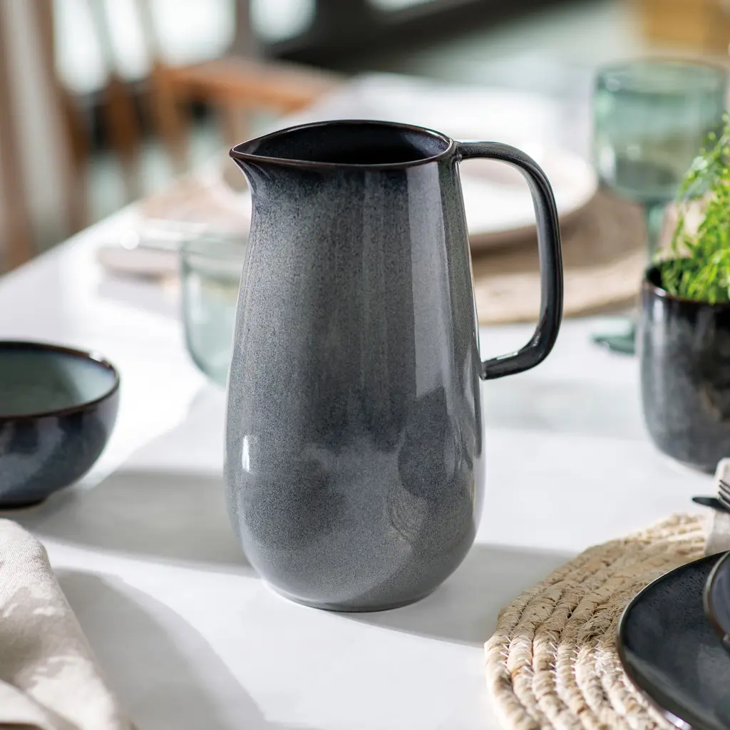 The Lave Stoneware Collection offers artisanal appeal to your tabletop with asymmetrical shapes and a special reactive glaze rendering each piece unique.