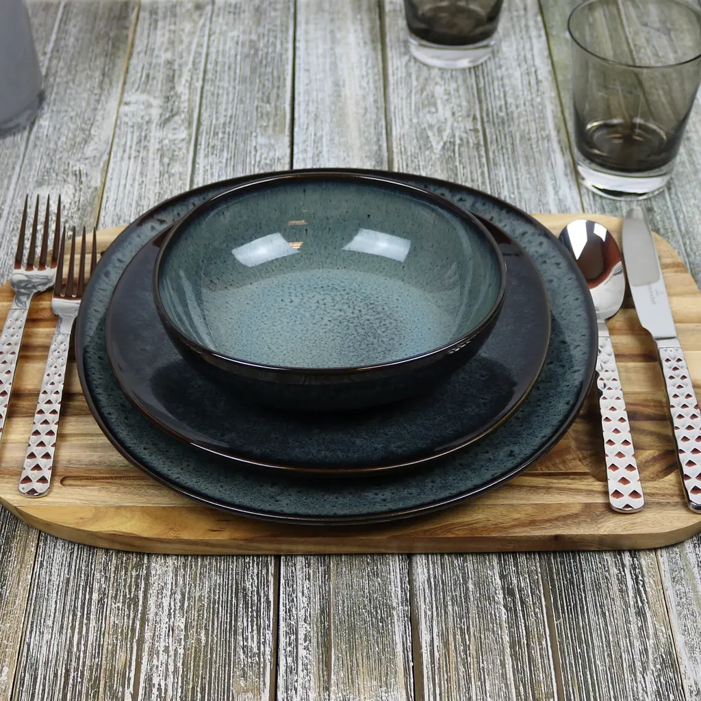 The Lave Stoneware Collection offers artisanal appeal to your tabletop with asymmetrical shapes and a special reactive glaze rendering each piece unique.