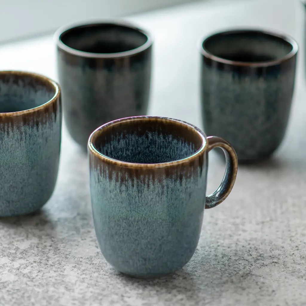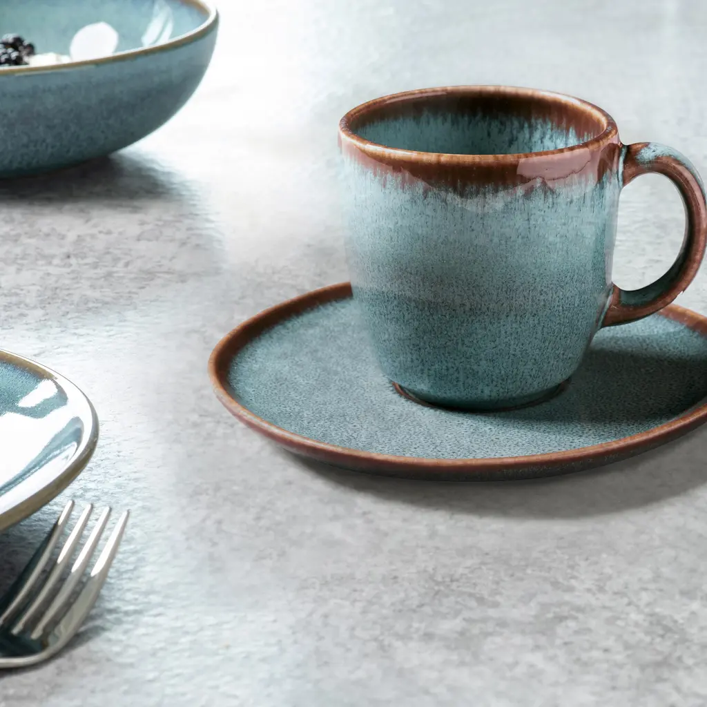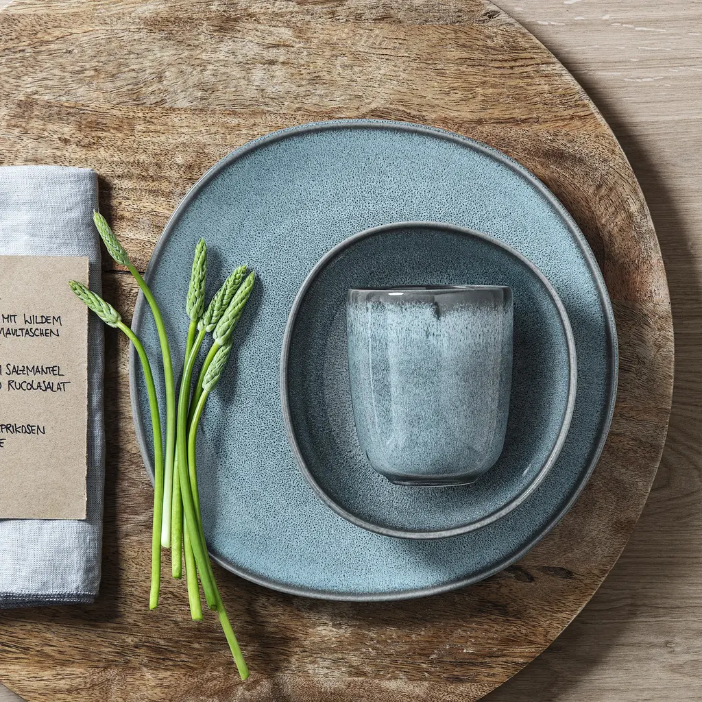 The Lave Stoneware Collection offers artisanal appeal to your tabletop with asymmetrical shapes and a special reactive glaze rendering each piece unique.