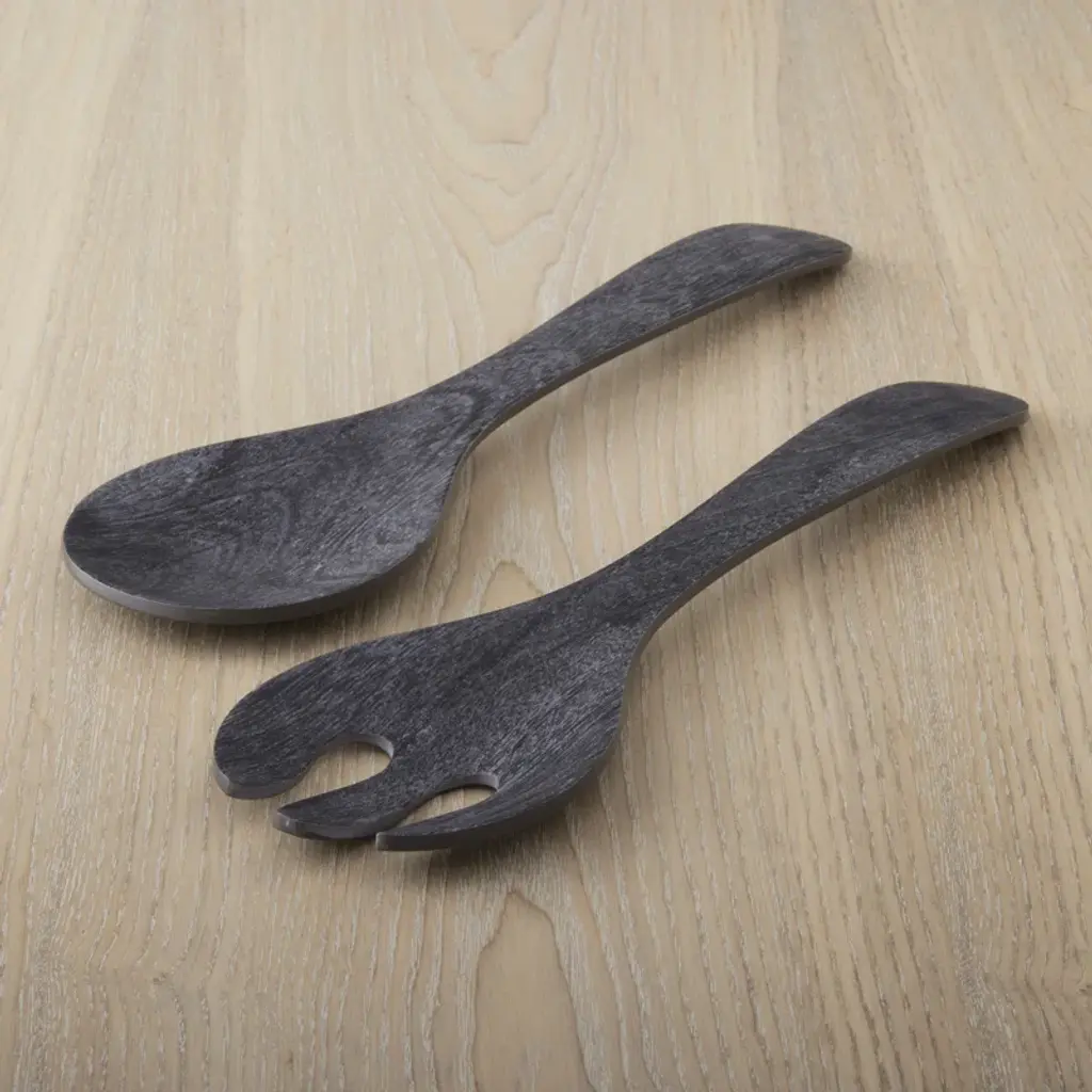 This 2-piece salad server set lends timeless charm to your dining room or kitchen table. It comes with a round serving spoon and a three-tine fork to help you serve up salads, pasta, and other dishes with ease. Each piece is made from melamine with a weathered gray faux wood finish that's sure to complement your serveware collection. We love that they make a great sidekick to melamine serving bowls and platters. Plus, this set is easy to clean: Just add them to your dishwasher for fuss-free upkeep.