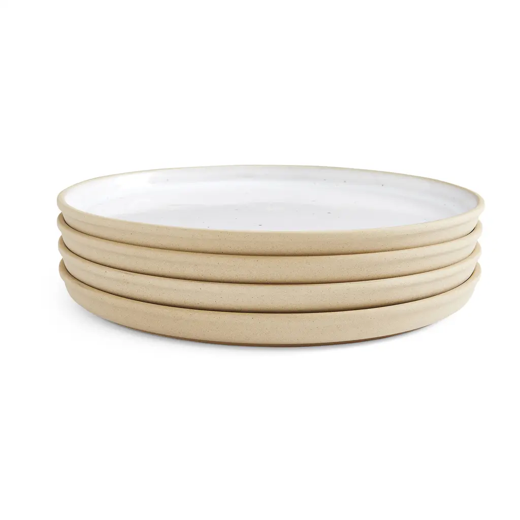Treat yourself to life's little luxuries with this set of 6 salad plates. Crafted from melamine, these plates mimic the look of stoneware artistry while maintaining a lightweight feel. Details include a speckled white glaze and an organic gray rim. Their size makes them sized just right for salads, appetizers, and pastries. These plates are free of BPA, PTFE, and PFOA. Plus, they're safe to clean in the dishwasher, making them an effortless addition to your collection.