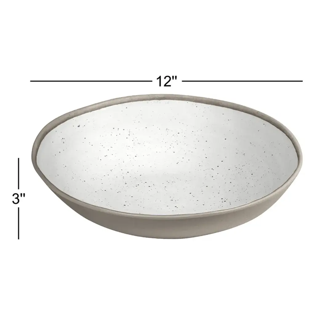 Enrich your dining experience with this serving bowl. With its timeless round shape, this bowl's speckled gray and white hue mimics the look of glazed stoneware while featuring a lightweight melamine construction. This serving bowl measures 12'' wide with a high curved rim, just right for containing fresh fruit, produce, or baked goods on your dining table. It's BPA-free and food-safe, making it an effortless addition to your dishware collection. Our favorite? This piece is chip-resistant and shatterproof, bringing enduring style to your space.