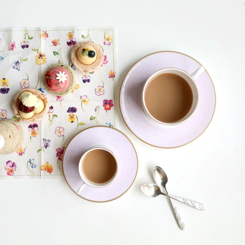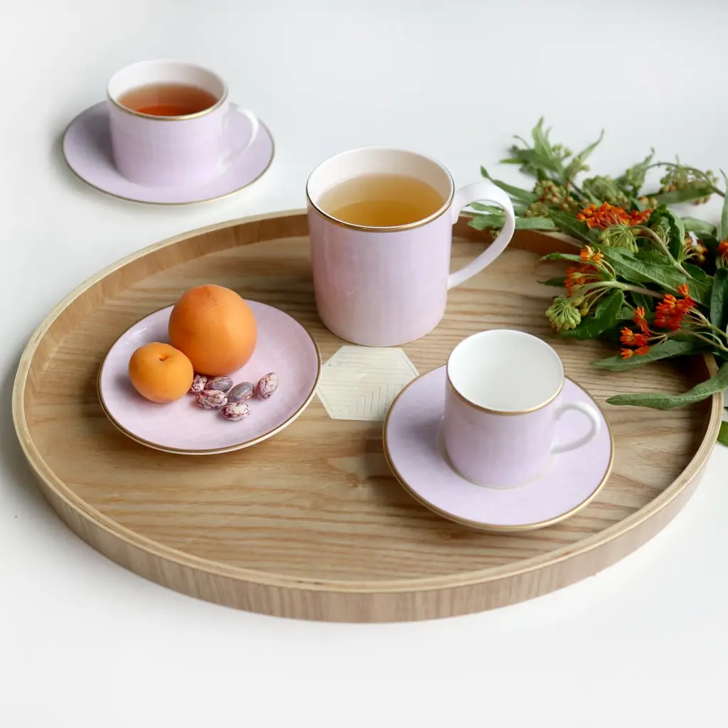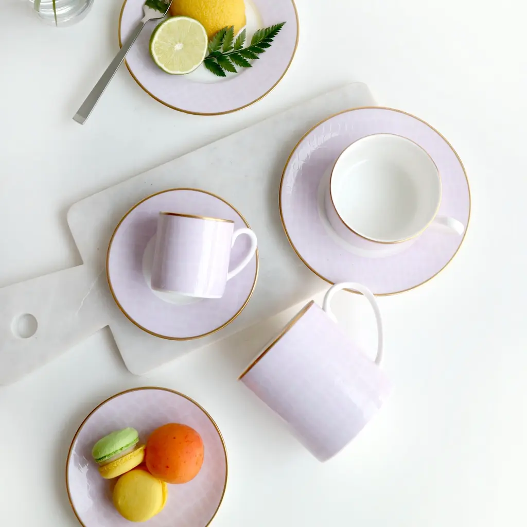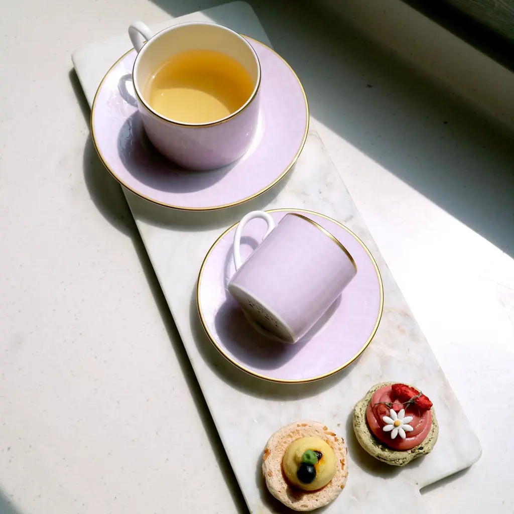 Drawing from the luxurious feel of shagreen and alligator leather, the Charlotte and Layla Collection is a truly special assemblage, designed around the tradition of drinking Tea and Coffee. With style in mind, each item in this collection has a hand-painted 24K gold rim. Textured Luxury from the Charlotte & Layla Collection by Twig New York.Ideal for espressoTwo sets per boxFine Bone China with 24K Gold hand-painted rimCharlotte & Layla Collection