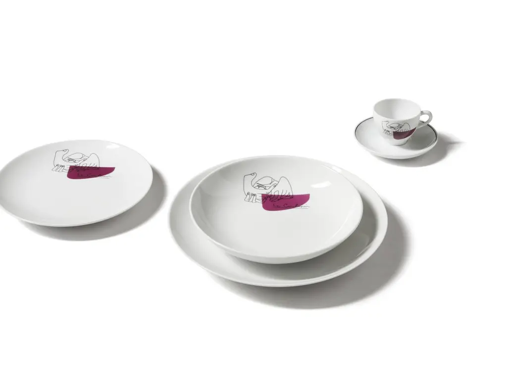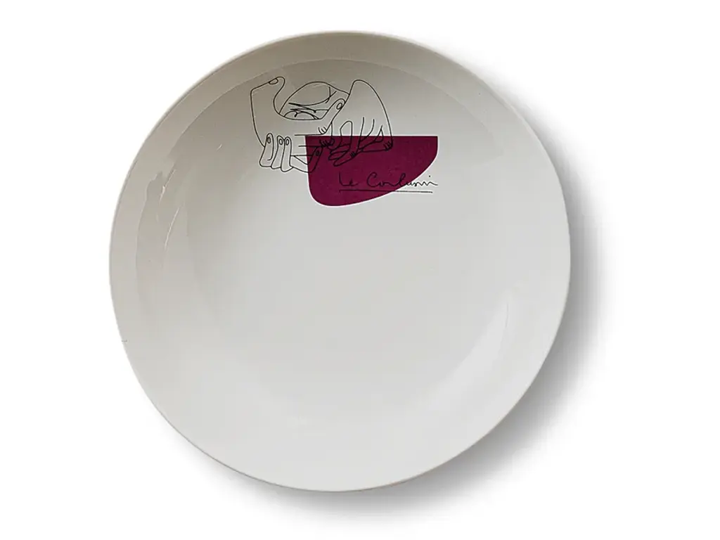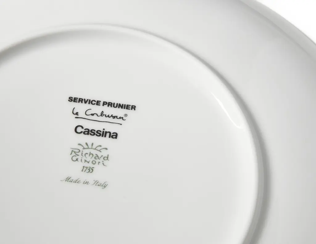 Le Corbusier Service Prunier Set of Two Soup Plates For Cassina The tableware collection by Le Corbusier, originally crafted for the Prunier restaurant in London, was revisited by Cassina, thanks to its partnership with Richard Ginori; it remains true to the original design and invests great care in authenticity.Cassina in collaboration with Ginori 1735 and the Le CorbusierFoundationThe tableware, designed by Le Corbusier, was originally created forthe Prunier restaurant in London. In 1961, owner Madame Prunierasked Corbusier to design a collection of tableware for her restaurantwith the interlocking hands motif found on the bottom of the LesMains tapestry, which was designed by the Master in 1951 anddisplayed in a private room of the establishment. Le Corbusier usedthe plates himself which, as he loved to say, combined quality andtaste, or “the taste of forms”. In collaboration with Ginori 1735, Cassinahas reissued the tableware with full respect for the original project,paying close attention to and focusing on its authenticity. ServicePrunier includes a plate, soup dish, dessert plate and coffee cupwith saucer and is made of white porcelain, like the model, with LeCorbusier’s original design applied by hand.Materials:White Porcelain, design applied by handTableware.Diner plate 27cm diameterSoup Plate 21cm diameterDessert Plate 20cm diameterCoffe cup 10cm With sauce 12.5cm Cassina in collaboration with Ginori 1735 and the Le Corbusier Foundation. The tableware, designed by Le Corbusier, was originally created for the Prunier restaurant in London. In 1961, owner Madame Prunier asked Corbusier to design a collection of tableware for her restaurant with the interlocking hands motif found on the bottom of the Les Mains tapestry, which was designed by the Master in 1951 and displayed in a private room of the establishment. Le Corbusier used the plates himself which, as he loved to say, combined quality and taste, or “the taste of forms”. In collaboration with Ginori 1735, Cassina has reissued the tableware with full respect for the original project, paying close attention to and focusing on its authenticity. Service Prunier includes a plate, soup dish, dessert plate and coffee cup with saucer and is made of white porcelain, like the model, with Le Corbusier’s original design applied by hand.Important information regarding images of products:Please note that some of the images show other colors and variations of the model, these images are only to present interior design proposals. The item that is selling is on the first image.Important information regarding color(s) of products:Actual colors may vary. This is due to the fact that every computer monitor, laptop, tablet and phone screen has a different capability to display colors and that everyone sees these colors differently. We try to edit our photos to show all of our products as life-like as possible, but please understand the actual color may vary slightly from your monitorAbout the Designer:Charles-Edouard Jeanneret, known as Le Corbusier, was born at La Chaux-de-Fonds, in the Swiss Jura, in 1887; he died in France, at Roquebrune-Cap-Martin, on the French Côte d’Azur, in 1965.Early in his career his work met with some resistance owing to its alleged «revolutionary» nature and the radical look it acquired from its «purist» experiments; in time , however, it won the recognition it deserved and it is still widely admired. His message is still being assimilated by an ever increasing number of people in the profession, but his far-out avant-garde attitudes should be interpreted with due consideration for the use of rational systems in his planning method, evidenced by extremely simple modules and formes based on the functional logic.«Functionalism tending not so much to an exaltation of the mechanical function at the expense of the symbolic, as to the rejection of symbol that he now considers outmoded and insignificant and the restoration of the pratical function as a symbol of new values»(¹)In his activities as town-planner, architect and designer, his method of research continued to develop, at times going to the opposite extremes of a rich plastic idiom.Instances of this are: Unité d’Habitation, Marseille (1946-52); the Chapel at Ronchamp (1950-55);the Dominican Monastery «La Tourette» (1951-56); the Centre of Zurich (1964-65) the Hospital in Venice (1965).Much the same commitment will be found in the furniture of the Equipement intérieur de l’habitation (tables, chairs, armchairs, sofas) designed for the Salon d’Automne, 1928, with Pierre Jeanneret and Charlotte Perriand and “Casiers Standard”, system of container units designed for the Pavillon of the Esprit Nouveau, 1925, with Pierre Jeanneret.Cassina reproposes this furniture considered “up-to-date”; its clear and essential “form” is highly adaptable to change in time and in environment, constantly providing new significance.(¹) G.C.Argan, Arte Figurativa in the Enciclopedia Universale dell’arte, vol. 1, col.About The Manufacturer:Established in 1927 by Cesare and Umberto Cassina in Meda, Italy, Cassina launched industrial design in Italy in the 1950s, based on a totally innovative approach that marked the transition from artisan production to mass production. With a mindset focused on research and innovation, Cassina combines technology and long-standing artisan craftsmanship. Memory, research, innovation. Cassina blends traditional skills and superior productivity, meticulous attention to detail and passion, uniqueness and experimentation, wellbeing and sustainability. Today, the company continues to address new lifestyles with the creation of complete, harmonious interior decor solutions that embody the best contemporary design for all areas of the home.