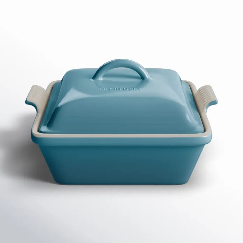 Made with high walls and a tight-fitting lid, this pan is designed to mold and slow cook terrines for a compact, evenly cooked and sliceable loaf. Like Le Creuset's famed cookware, the pan is made of cast iron with excellent heat retention and distribution. The enamel glaze in a vibrant, sea-inspired blue makes the pan impervious to stains and odors and chip-, crack- and scratch-resistant. Try your hand at a classic terrine or use the pan to bake bread, custard, lasagna or meatloaf.Revered by both professional chefs and home cooks since its 1925 debut, Le Creuset's classic cookware is prized for its utilitarian beauty and unsurpassed heat retention.
