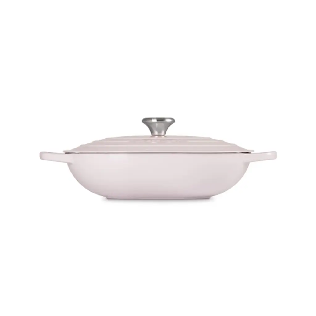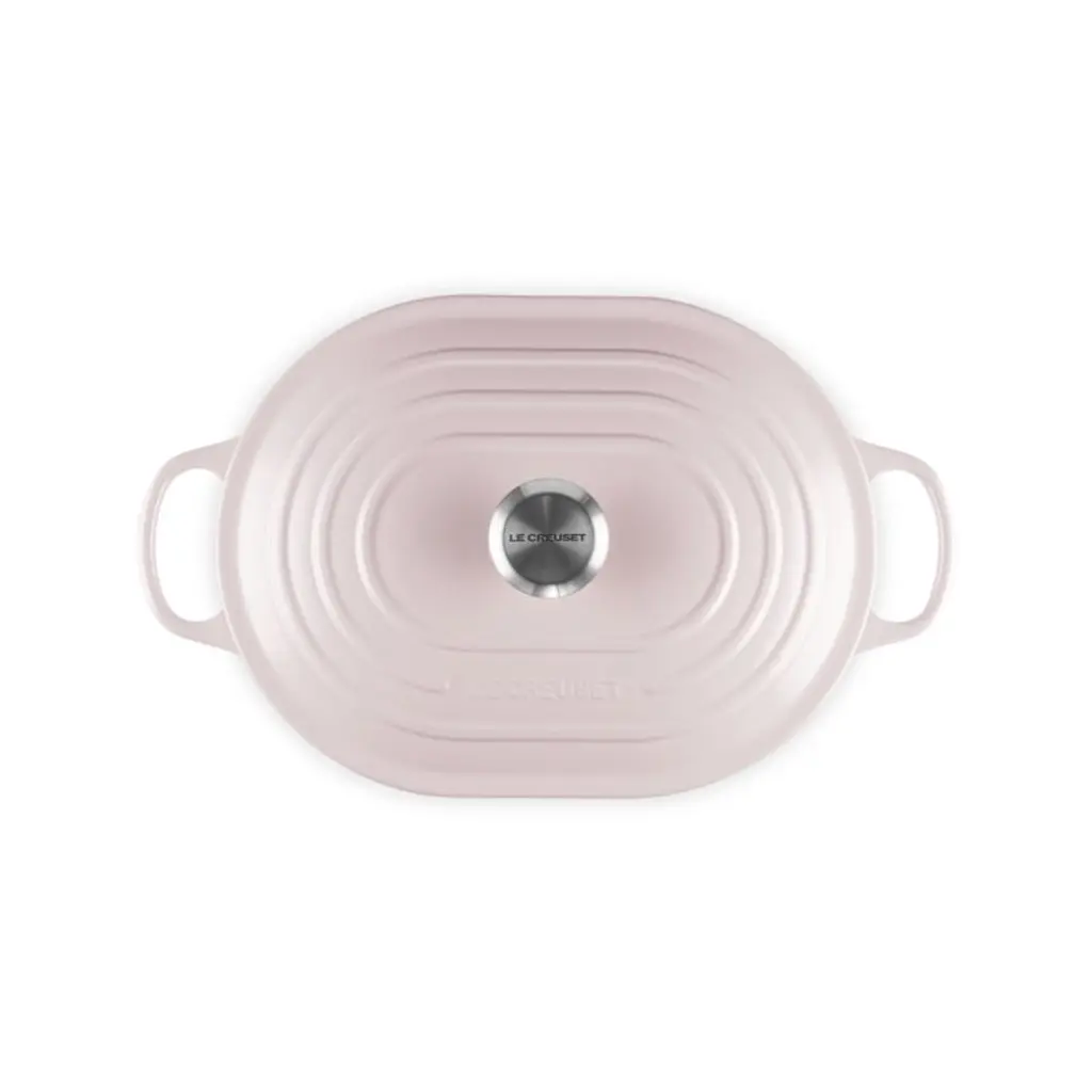 Porcelain enamel coats this display-worthy casserole dish in a creamy blush-purple hue inspired by shallots. The shallow oval shape accommodates fish, large cuts of meat or vegetables and roasts them to perfection. Or top the baking pan with the lid to bake deliciously moist casseroles. Cast iron offers impeccable heat distribution and retention, while the enameled surface minimizes sticking and staining. Designed with sloped sides for effortless serving, the covered casserole goes beautifully from stove to oven to table and cleans up easily in the dishwasher.Revered by both professional chefs and home cooks since its 1925 debut, Le Creuset's classic French cookware is prized for its utilitarian beauty and unsurpassed heat retention.