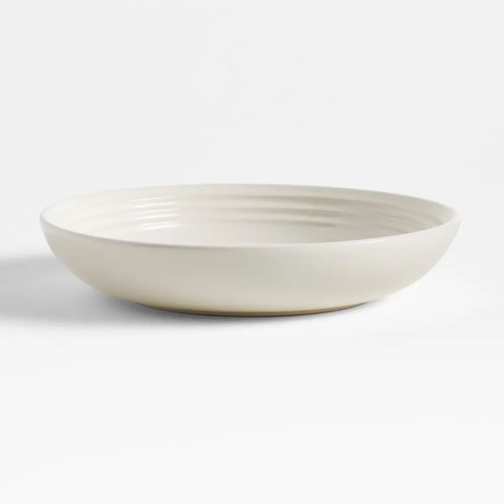 Known for its chef-inspired enamel cookware, Le Creuset introduces a premium stoneware dinnerware collection. The coupe-shaped pasta bowls in this four-piece set are crafted with the same durable glaze and concentric-ridge detailing found in the celebrated cookware. Non-reactive and chip-, scratch- and stain-resistant, the classic, cream-colored low bowls make everyday meals a special occasion.
