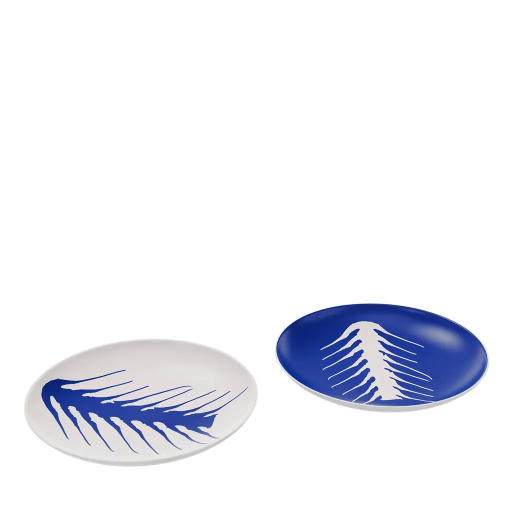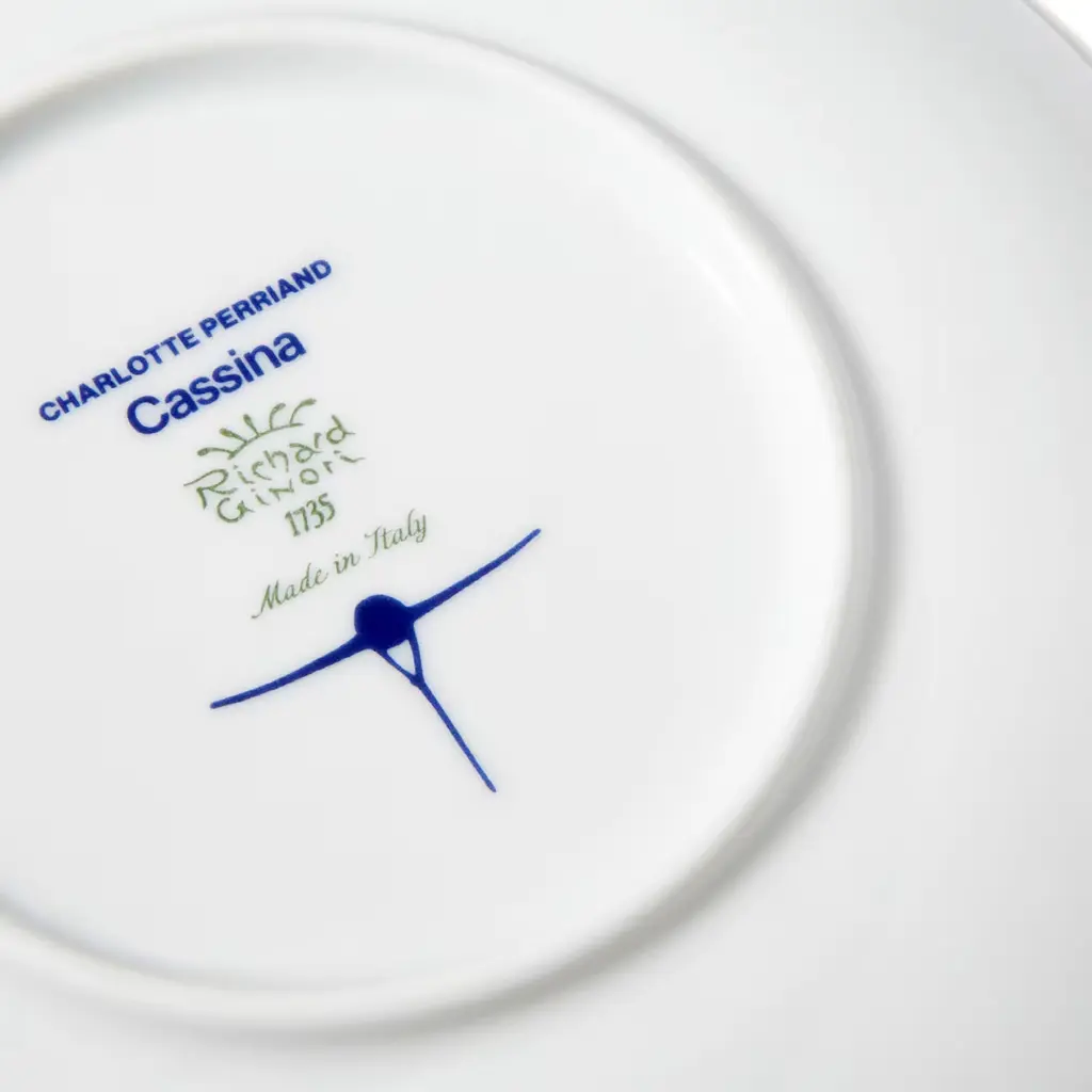 Set of 2 flat plates - Arete. Le Monde de Charlotte Perriand: a new tableware collection inspired by her passion for nature: Cassina continues its collaboration with Ginori 1735 and presents the finest porcelain dinner set inspired by the photography of Charlotte Perriand. Hand-decorated and characterized by patterns that combine the colors blue and white, this striking set of plates is the perfect proposal to embellish any dinner table. The Le Monde de Charlotte Perriand collection includes a service plate, a dinner plate, a bowl, and a side/ dessert plate, presented in a set of two, with three different decorations that can be mixed and matched. To guarantee authenticity, each piece is marked with the Cassina and Ginori 1735 logos.