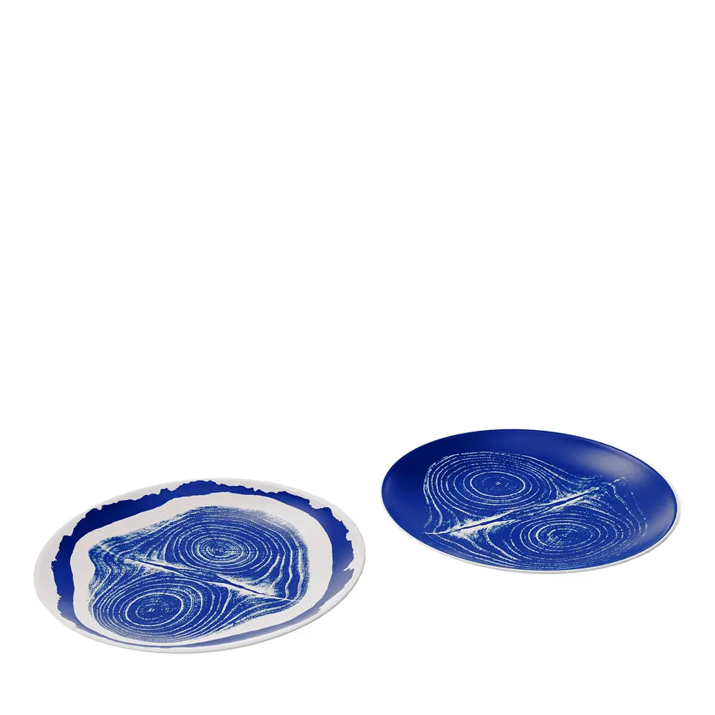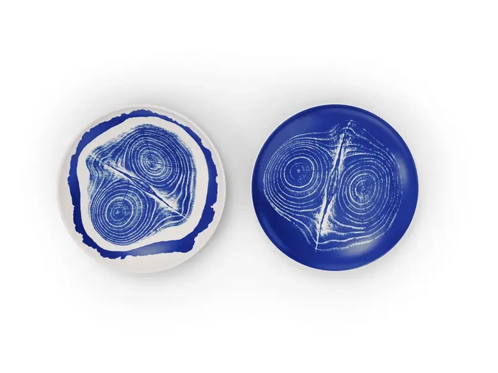 Set of 2 flat plates - Tronc. Le Monde de Charlotte Perriand: a new tableware collection inspired by her passion for nature: Cassina continues its collaboration with Ginori 1735 and presents the finest porcelain dinner set inspired by the photography of Charlotte Perriand. Hand-decorated and characterized by patterns that combine blue and white, this striking set of plates is the perfect proposal to embellish any dinner table. The Le Monde de Charlotte Perriand collection includes a service plate, a dinner plate, a bowl, and a side/ dessert plate, presented in a set of two, with three different decorations that can be mixed and matched. Each piece is marked with the Cassina and Ginori 1735 logos to guarantee authenticity.