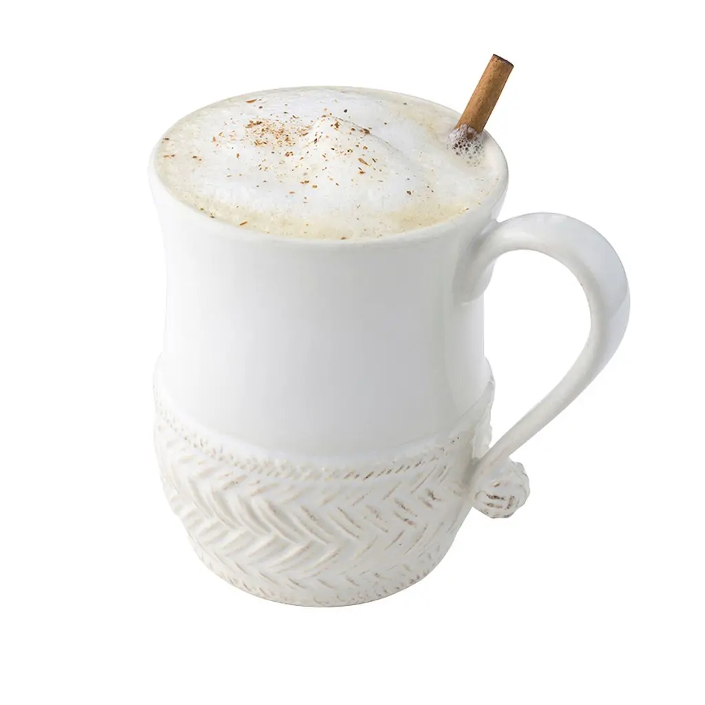From our Le Panier Collection - For a morning cup of cafe au lait or steaming tea - after late-night feasting with friends - this mug suits masculine and feminine sensibilities equally. A basket-weave motif at the base lends a traditional air while a graceful handle is finished with a sailor's knot.