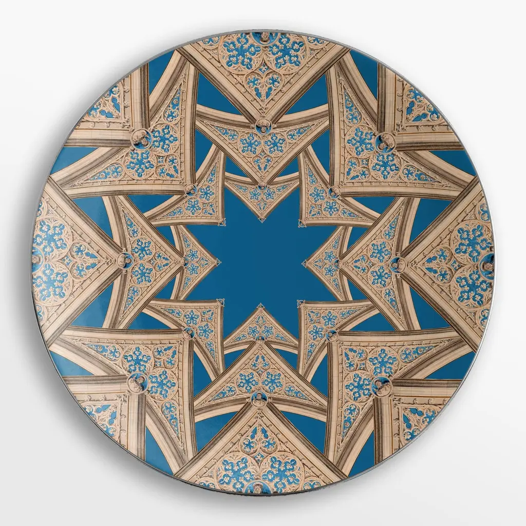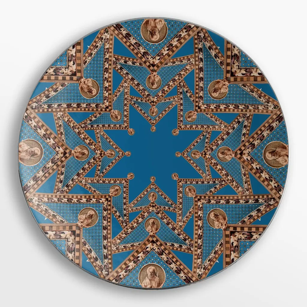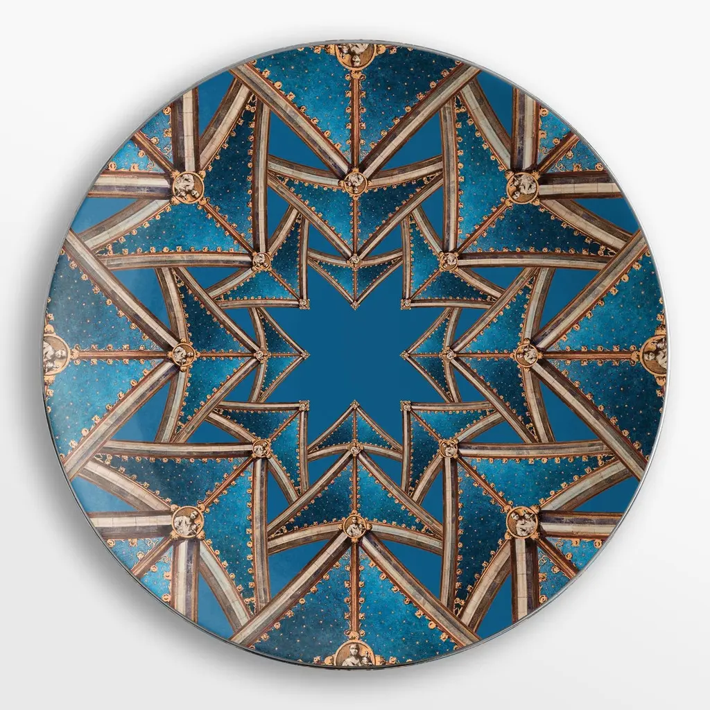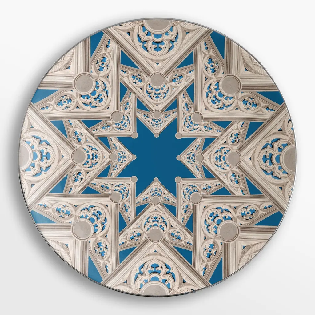 Le Volte Celesti è una collezione di piatti e complementi d'arredo progettata dal designer Vito Nesta. La digitalizzazione di alcuni dei disegni presenti all'interno del ricchissimo archivio della Veneranda Fabbrica ha permesso la realizzazione di una serie di prodotti, dimostrando che la bellezza che custodisce l’archivio non è solo appannaggio di studiosi e ricercatori, ma può essere fruita da tutti nelle forme più svariate. I protagonisti in questa collezione sono i disegni di Paolo Cesa Bianchi che mostrano uno dei progetti più incredibili mai proposti: la sua idea di portare il cielo dentro al Duomo, decorando le volte della cattedrale con un fondo blu arricchito da stelle d’oro. Il lavoro fatto su di essi ha creato una collezione unica e estremamente elegante, dal facile utilizzo e dal forte impatto visivo.Parte del ricavato delle vendite di queste collezioni contribuirà alla restaurazione delle guglie del Duomo.Set da sei platters