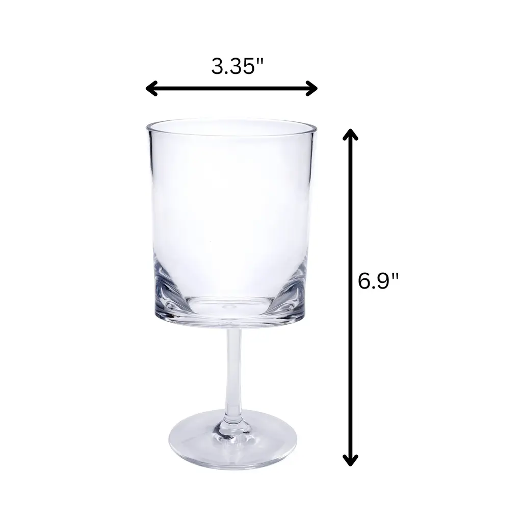 Don’t serve your guests with unattractive wine glasses which just don’t cut it in terms of style and durability. Upgrade to the unbreakable stemmed wine glasses from LeadingWare and make a statement with these elegant and long-lasting glasses.. This set includes four glasses, each holding a generous 12 ounces of your preferred wine. These glasses are break resistant, meaning you don't have to worry about messy accidents or replacing broken glasses. Impress your guests and elevate your wine tasting experience with the unbreakable stemmed wine glasses.. Raise a toast with confidence using our wine glasses made with the highest quality, BPA-free plastic material that is not only incredibly sturdy, but also crystal clear in appearance. So go ahead, clink your glasses in harmony and celebrate with our top-quality, durable glasses.. No need to worry about the tedious task of hand-washing after drinking hour. Simply toss them in the top rack of dishwasher and they will come out sparkling like new every time. This convenience makes our dishwasher safe glasses perfect for both everyday use and entertaining.. Whether you're hosting a pool party, or just enjoying a warm summer evening on the patio, these shatterproof wine glasses are sure to become your go-to choice for drinking your favorite wine. So, get your wine glasses today and elevate your entertaining game to the next level!. Inside and Outside Friendly. Crystal Clear looks similar to glass