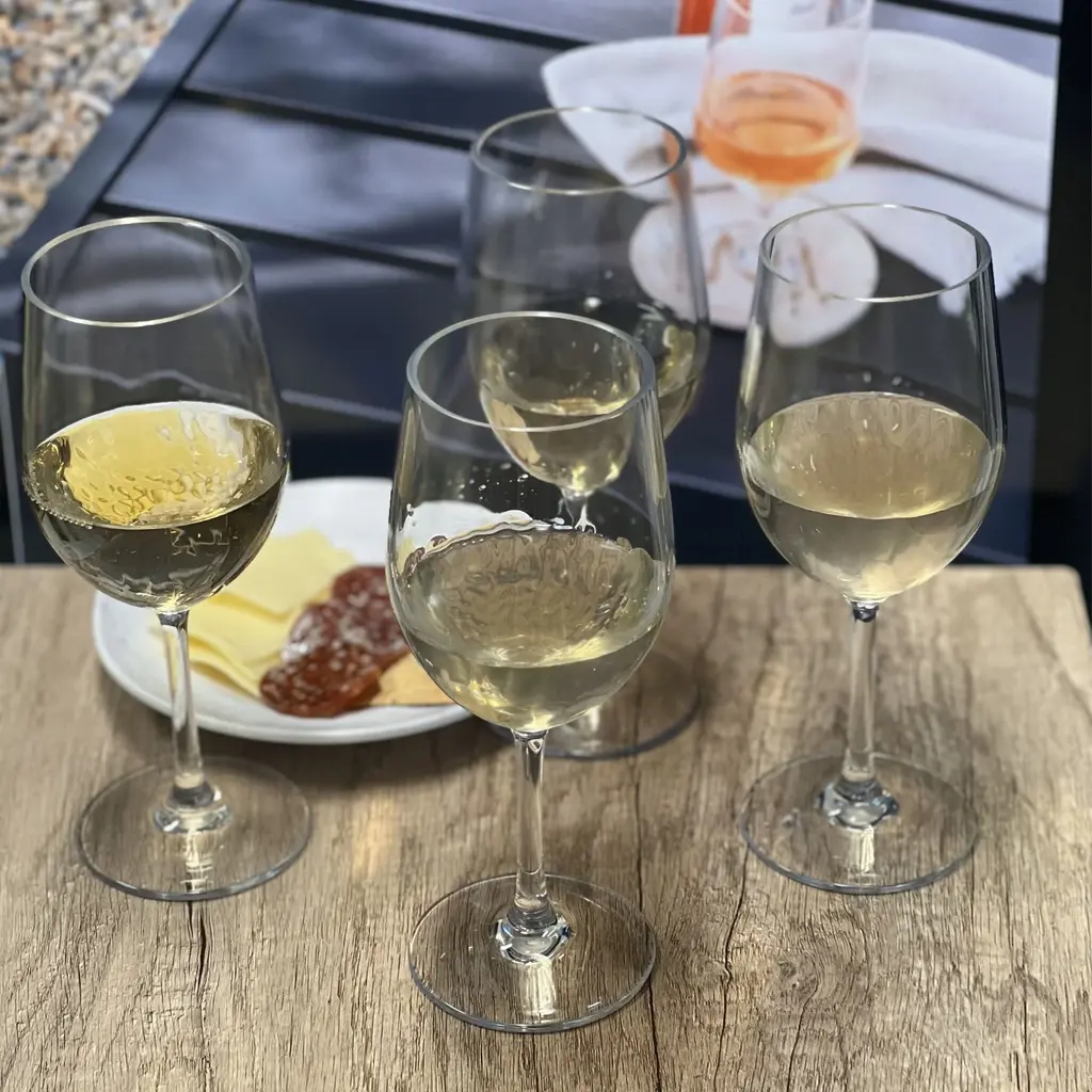 Don’t serve your guests with unattractive wine glasses which just don’t cut it in terms of style and durability. Upgrade to the unbreakable stemmed wine glasses from LeadingWare and make a statement with these elegant and long-lasting glasses.. This set includes four glasses, each holding a generous 12 ounces of your preferred wine. These glasses are break resistant, meaning you don't have to worry about messy accidents or replacing broken glasses. Impress your guests and elevate your wine tasting experience with the unbreakable stemmed wine glasses.. Raise a toast with confidence using our wine glasses made with the highest quality, BPA-free plastic material that is not only incredibly sturdy, but also crystal clear in appearance. So go ahead, clink your glasses in harmony and celebrate with our top-quality, durable glasses.. No need to worry about the tedious task of hand-washing after drinking hour. Simply toss them in the top rack of dishwasher and they will come out sparkling like new every time. This convenience makes our dishwasher safe glasses perfect for both everyday use and entertaining.. Whether you're hosting a pool party, or just enjoying a warm summer evening on the patio, these shatterproof wine glasses are sure to become your go-to choice for drinking your favorite wine. So, get your wine glasses today and elevate your entertaining game to the next level!. Great for Parties. Inside and Outside Friendly