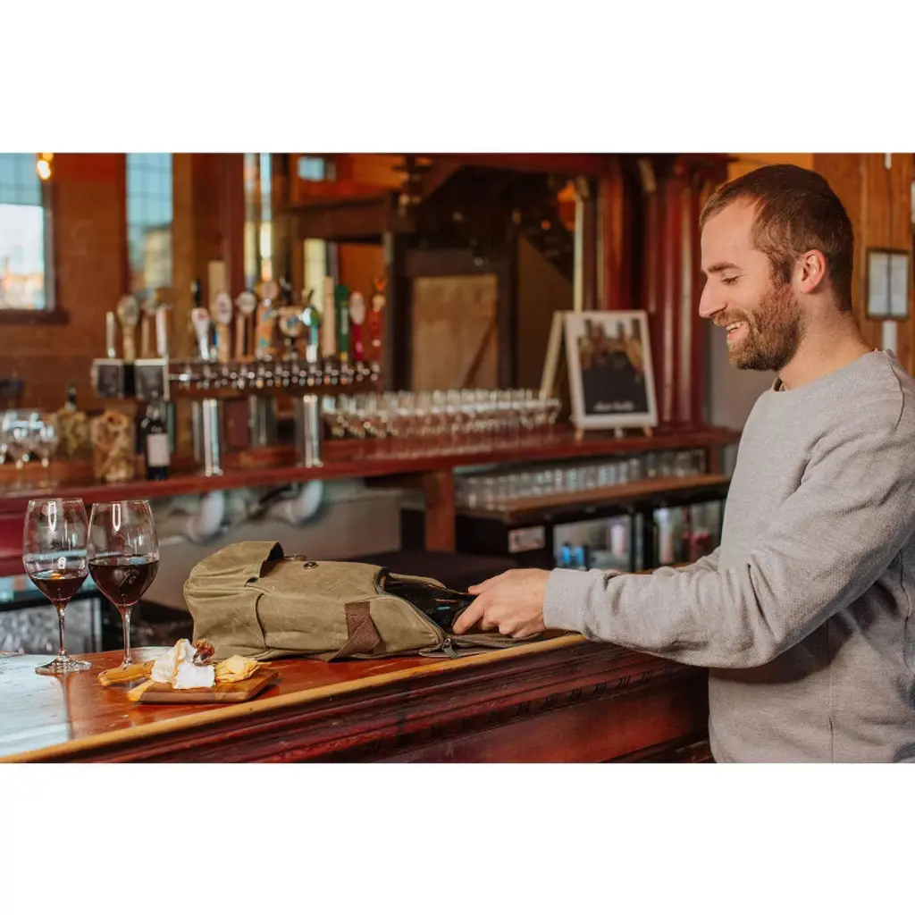 Is this heaven in wine tote form? That’s debatable, but we can say for certain that the 2 Bottle Insulated Wine Bag with Cheese Board and Knife Set has everything you need to enjoy wine and cheese anywhere and everywhere. Oh, the places you'll go with this insulated wine picnic tote bag! With two insulated compartments for wine bottles (or 1 bottle and food items should you choose), an Acacia wood cutting board, a stainless steel cheese knife with wooden handle, and a waiter-style corkscrew, this wine cooler bag is all set for your picnic. The durable, distressed waxed cotton canvas construction makes this a ruggedly stylish tote-able wine bag perfect for the park or a picnic after a short hike.Includes: 1 Waxed Canvas Bag (9.84" x 5.12" x 13.58"); 1 Stainless Steel Corkscrew (4.5"); 1 Stainless Steel and Wood Cheese Knife (7.5"); 1 Acacia Cheese Board (6" x 6" x 0.75")Material: 80% Cotton Canvas; 15% 420D Polyester with PU Coating; 5% 600D Polyester with PVC Backing