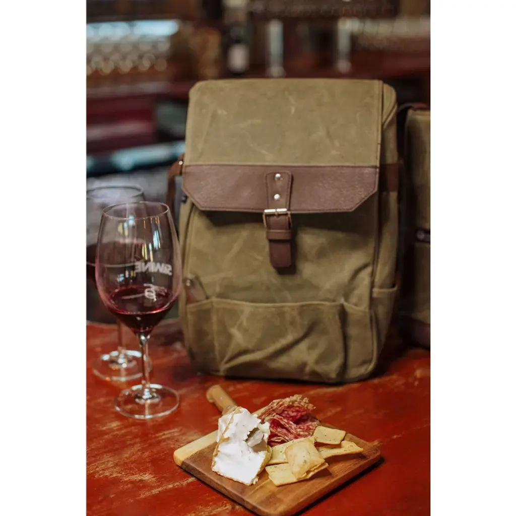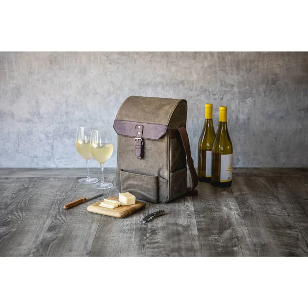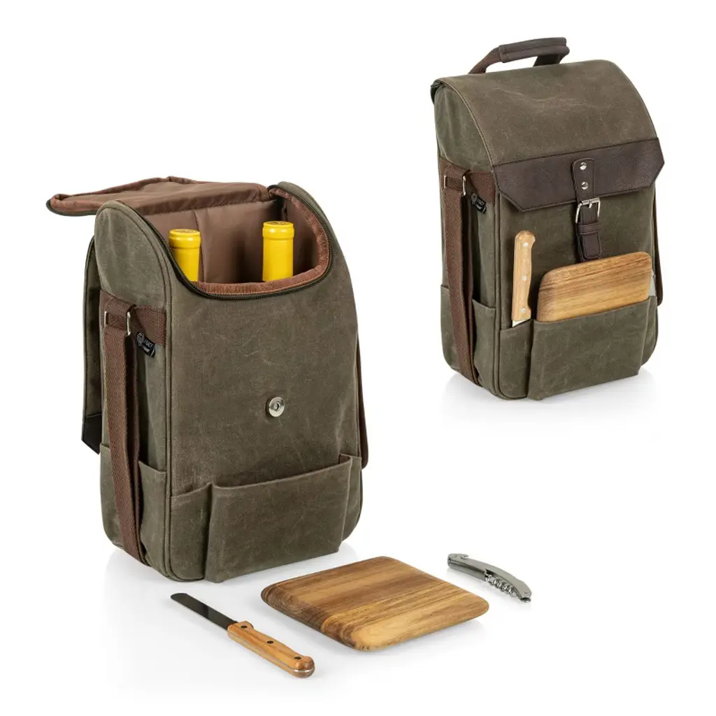 Legacy 2 Bottle Insulated Wine & Cheese Cooler With Cheese Board Knife & Corkscrew - Khaki Green