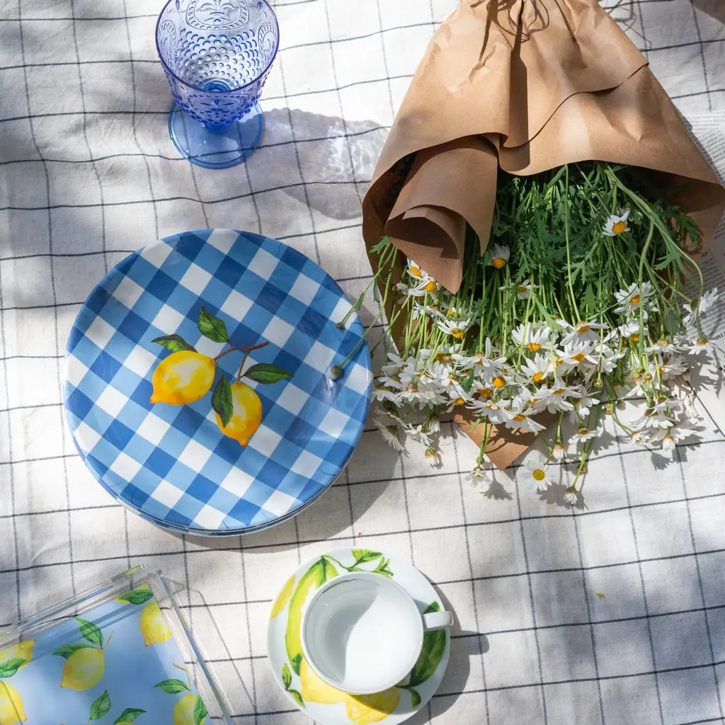 Immerse your tables in the delightful charm of picnic patterns, drawing inspiration from the cheerful allure of cherries and the zesty vibrancy of lemons. Elevate your summer gatherings with this collection, bringing a burst of freshness and joy to every table setting. Enjoy the season in style with our vibrant and spirited designs.