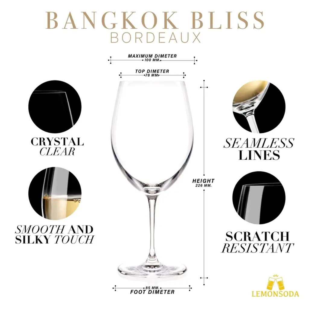 Introducing the versatile Bangkok Bliss Bordeaux Wine Glasses – an ideal gift for weddings, anniversaries, birthdays, or any celebration. Suitable for red and white wine, rose, and mimosas, these 26oz glasses are a stylish addition to your collection. Elevate your gatherings and impress guests at weddings, engagements, birthdays, or promotion parties with this unique and aesthetically pleasing wine glass set.