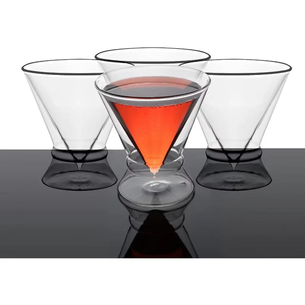 Lemonsoda Stemless Martini Glasses - Double Walled Design With Ring Base - 8 Oz - Set Of 4