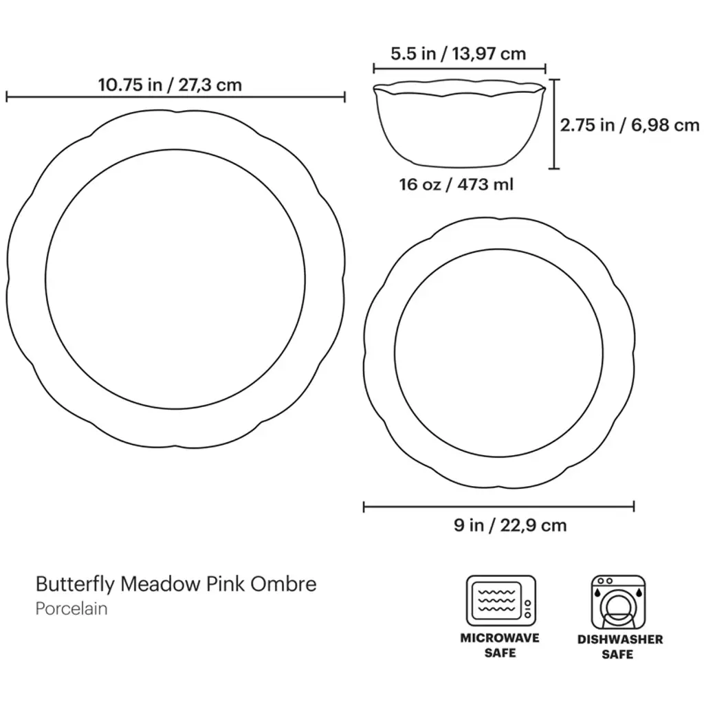 Lenox Butterfly Meadow Pink Ombre 12-Piece Dinnerware Set