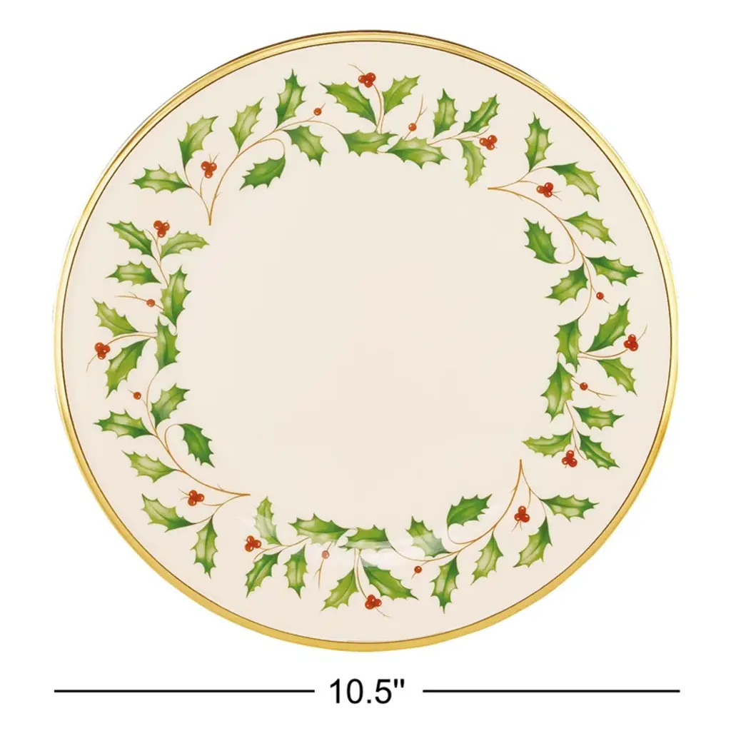 The Lenox Holiday collection has been part of holiday celebrations for generations. And this festive plate will make a wonderful addition to your table for this and every holiday season. Decorated with the cherished holly and berries holiday motif.