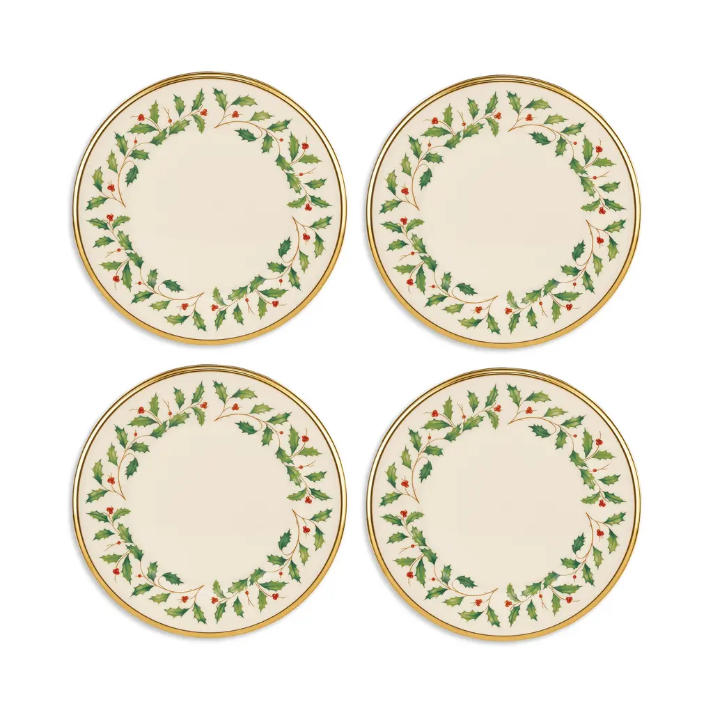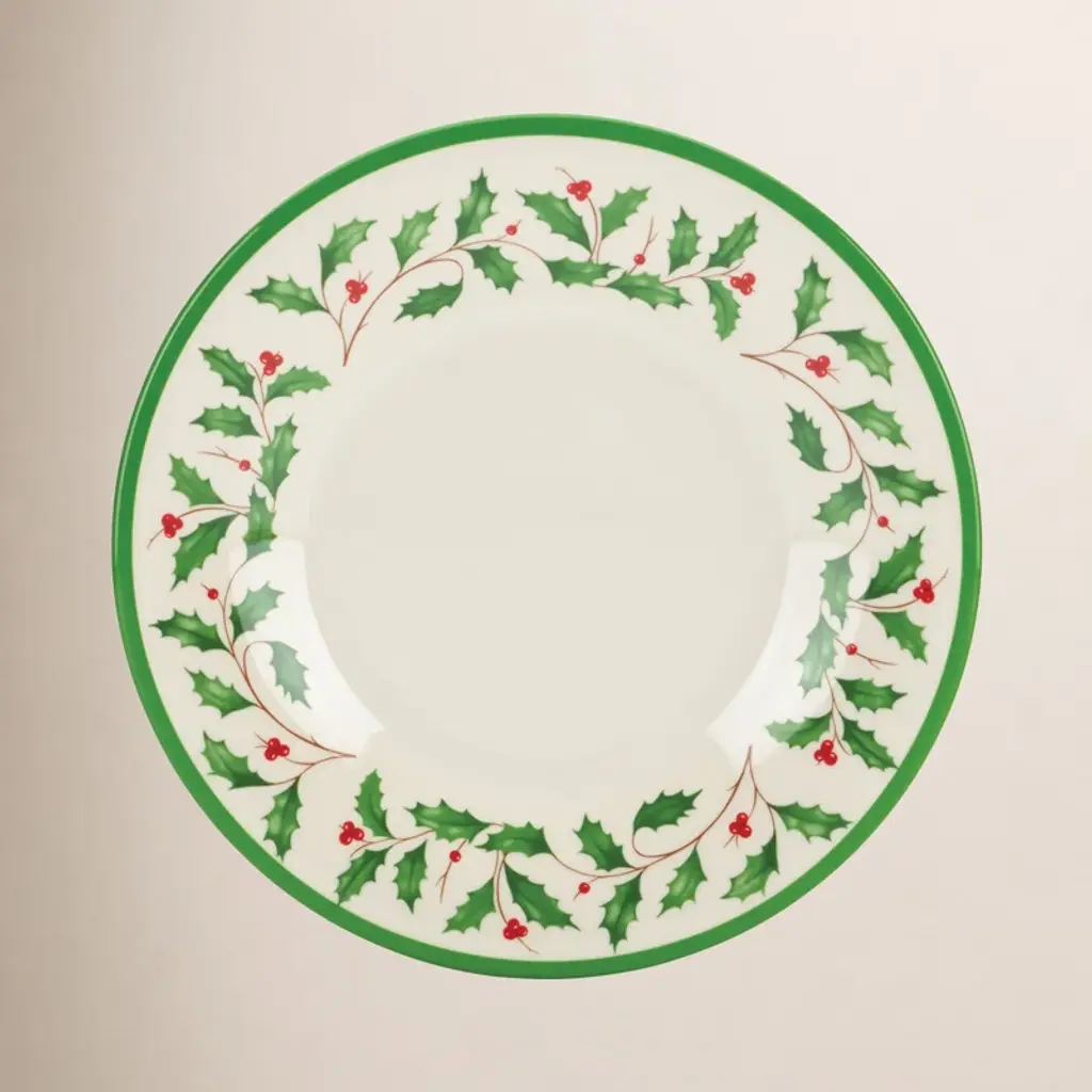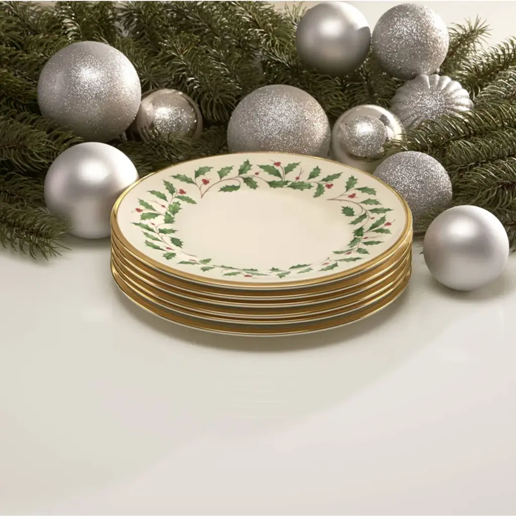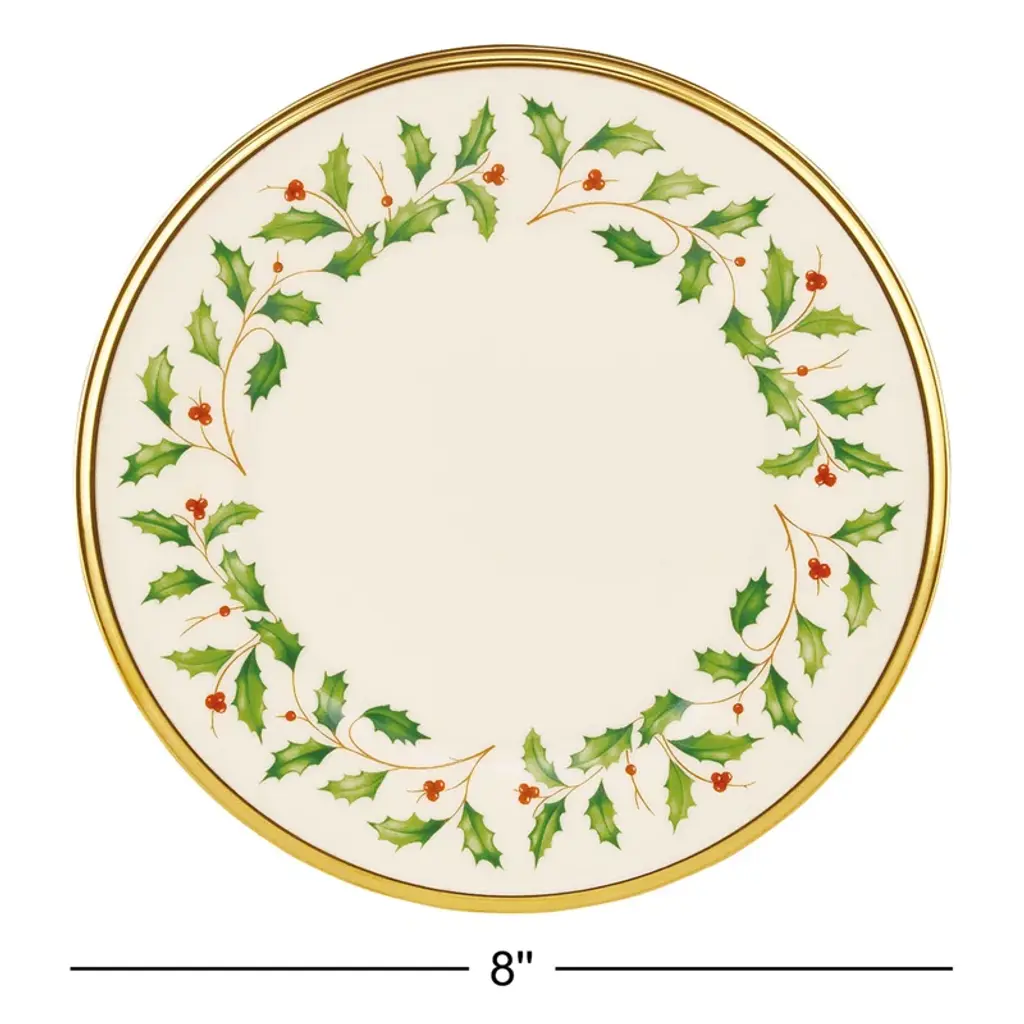 Colorful holly encircled with gold. That's the beauty of this festive plate crafted of Lenox porcelain china. It bears the rich and colorful holly and berries motif. And it makes a lovely complement to any holiday dining occasion.