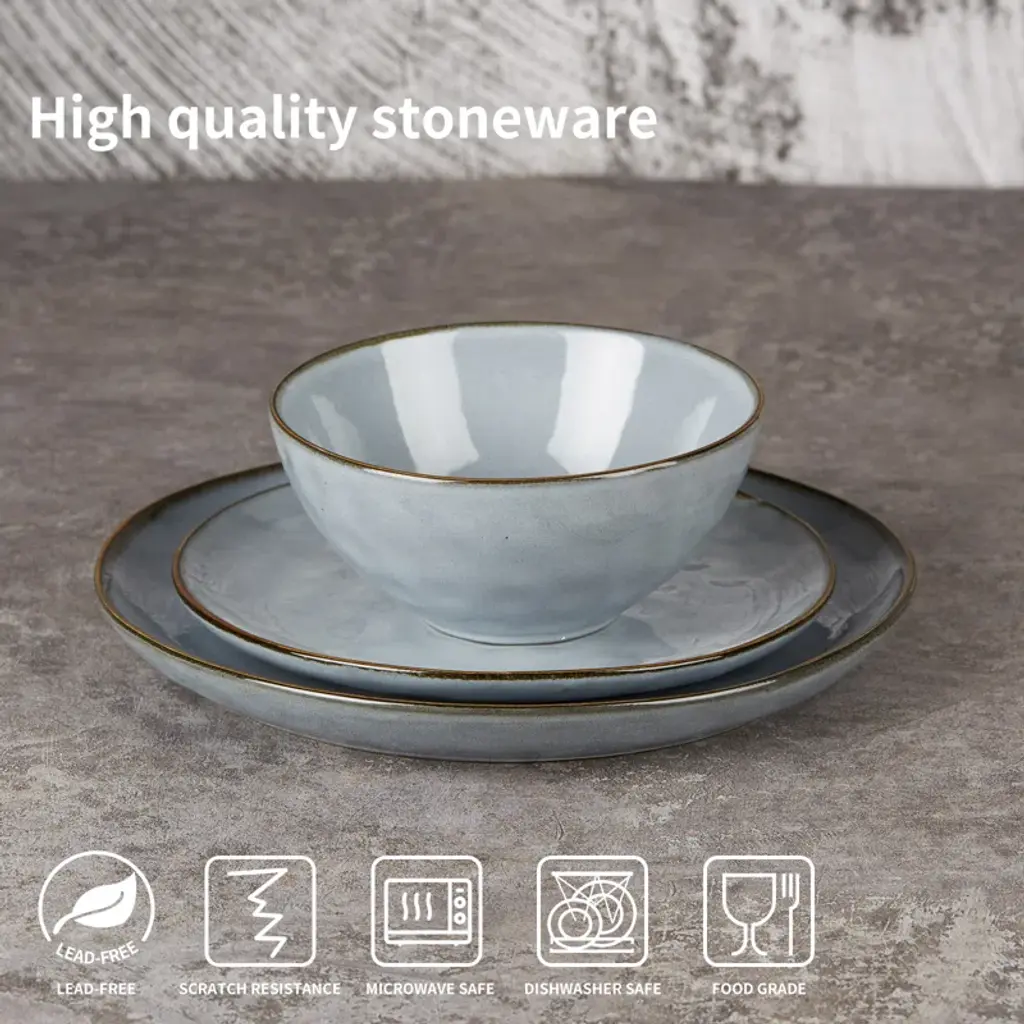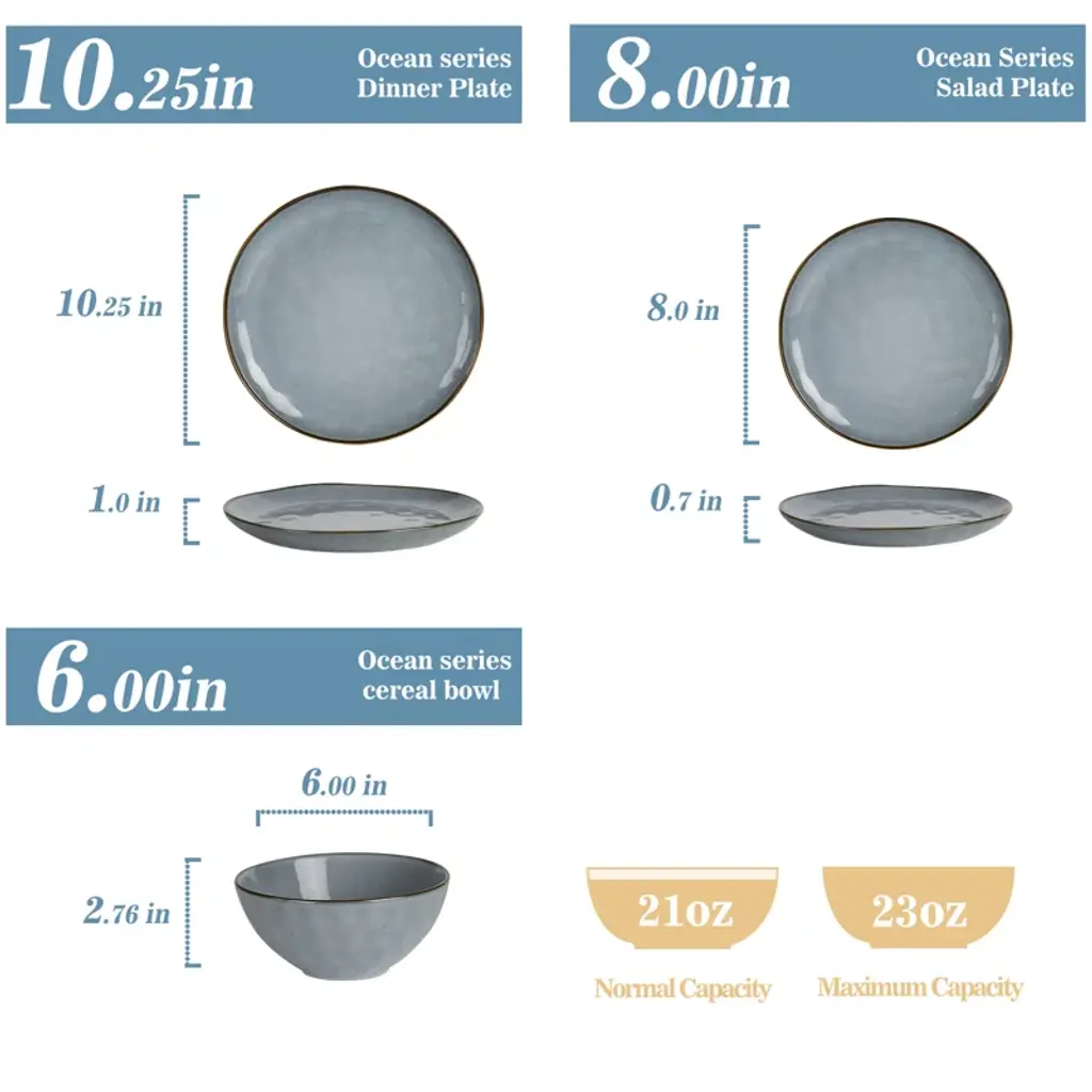 Famiware plates and bowls set is the ultimate combination of style, functionality, and versatility. This dinner set is made of 100% lead-free glaze and not need to worry about harmful substances leaching into your food. Bright and dreamy colors enhance the luxury of this sturdy stoneware tableware to feast your guests' eyes and set the tone for a pleasant meal. Each dish set is made of high-quality stoneware that is dishwasher and microwave-safe. The plate set is easy to clean and easy to care for. The dishes are served for four people, including dinner plates, salad plates, and cereal bowls.