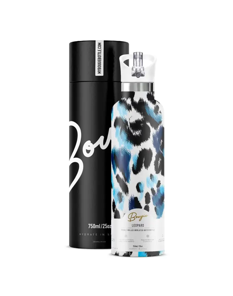 Unleash your wild side with our boldest Bougie Bottle yet. Featuring an electrifying take on classic leopard print with icy blues, deep indigos, and sharp monochrome accents, Leopard is made for those who love to stand out.Crafted from premium stainless steel and designed to keep drinks cold for 24+ hours, this bottle pairs fierce fashion with eco-conscious function. The sleek silhouette, leakproof flip straw lid, and scratch-resistant design make it your perfect on-the-go hydration companion—whether you're hitting the gym or strutting through your 9-to-5.