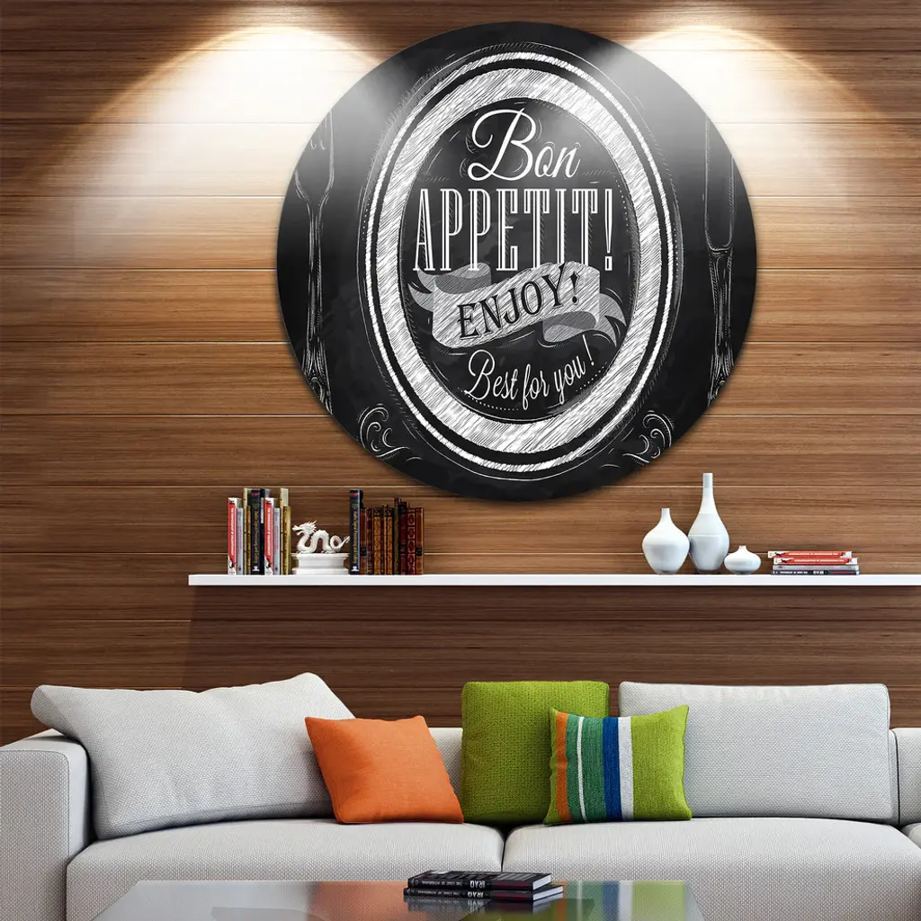 Lettering On A Plate, Digital Art Round Metal Wall Art, 23"