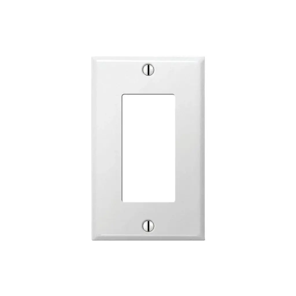2-gang combination wall plate. Includes 1 toggle gang and 1 blank device gang. Standard size. Durable thermoplastic construction. Box mount. Includes 4 white enamel screws.