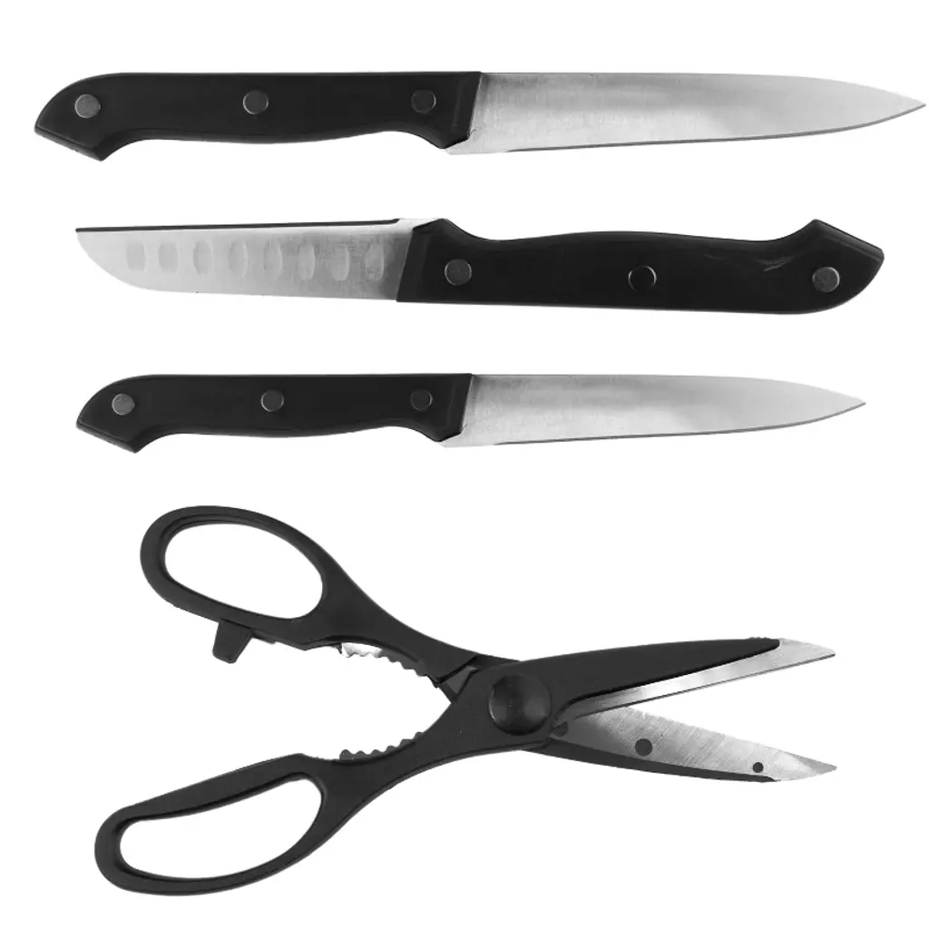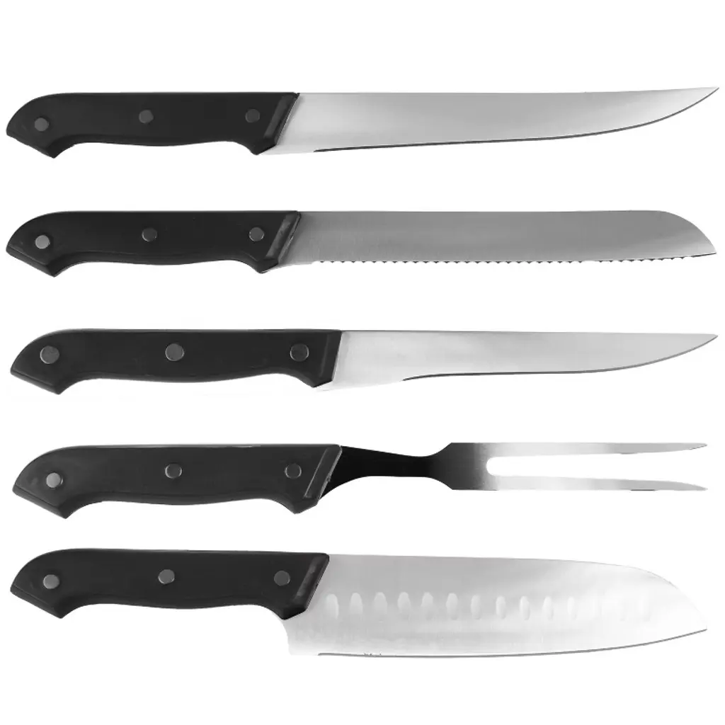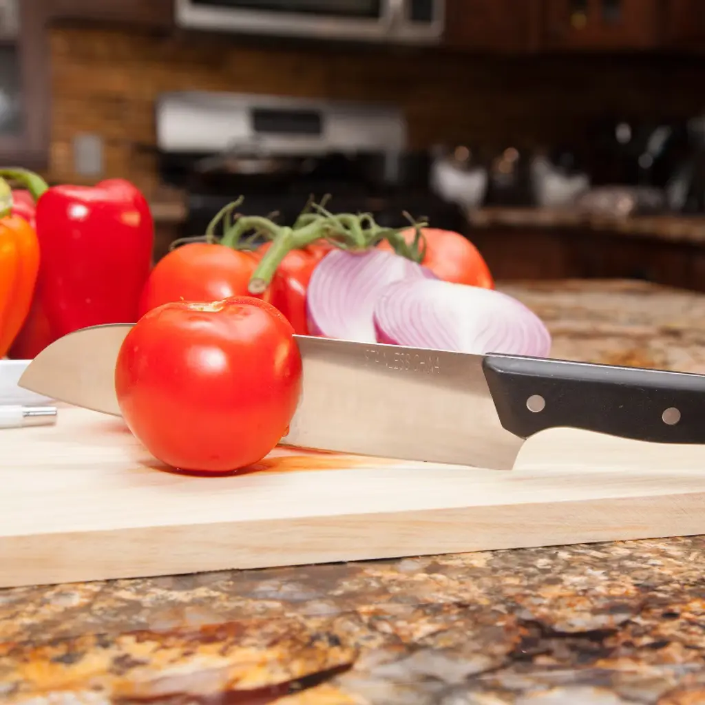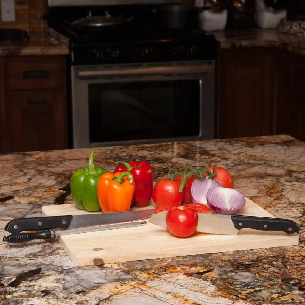 This modern kitchen knife set has all the necessary kitchen utensils to complete your kitchen accessories and to aid your cooking efforts. This 16-piece set makes a great gift idea for any person setting up their first home with the basics or merely as a classic replacement set for those old rust covered knives. The set comes with multiple knives and a bonus wooden cutting board. Whether using these for a fine dining experience, or simply to take with you when you travel to go fishing, hunting, or even as a utility survival knife, this set will meet all your needs. Wall mount these knives using a magnet holder or store them in a solid wood block for best safe keeping.