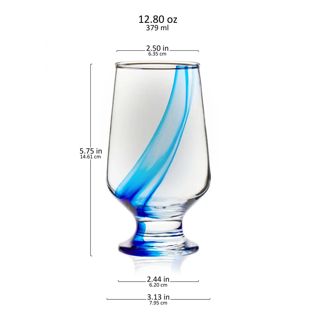 The Libbey Blue Ribbon 8-piece Goblet Beverage Glass Set turns an everyday occasion into a special event. Each artisan goblet features an infused blue streak that is unique to each glass. The goblet glasses are durable, trendy, and ready to showcase your refreshing beverages.