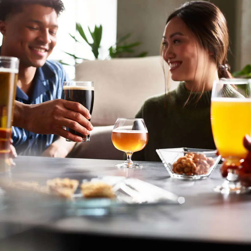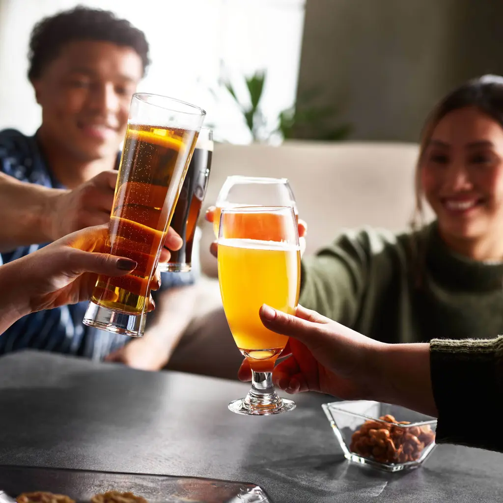 Beer tastes better when it’s served in the right glassware, and the Libbey Craft Brews Beer Glass Set is designed to bring out all your brews' best qualities. Sample your favourite styles with this 6-piece set that includes a sour beer glass, wheat beer glass, lager/pilsner glass, stout glass, high-ABV glass and IPA glass. Featuring: Specialized glassware enhances the distinct taste of every beer, delighting both connoisseurs and casual enthusiasts Perfect gift for beer enthusiasts looking to elevate their favorite brews, offering exceptional value Featuring a set of six premium beer glasses, including one each of the following: a 12-ounce sour beer glass, a 16-ounce wheat beer glass, a 16-ounce lager/pilsner glass, a 16-ounce stout glass, a 10-ounce high-ABV glass, and a 16.75-ounce IPA glass Lead free and safely packaged, our products are shipped in a protective box; It is advisable to wash them before use, as orders are shipped directly from the manufacturer's warehouse Ensure the longevity of your items with quick and easy cleanup; our products are durable and dishwasher safe; for care and handling instructions, visit the brand website Product Dimensions (Country of Origin): Sour Beer Glass - 3.6 x 3.6 x 4.6 inches (United States) Wheat Beer Glass - 3.5 x 3.5 x 7.6 inches Lager/Pilsner Glass - 3.0 x 3.0 x 9.0 inches Stout Glass - 3.3 x 3.3 x 5.9 inches High ABV Glass - 3.2 x 3.2 x 5.2 inches IPA Glass - 3.4 x 3.4 x 5.7 inches