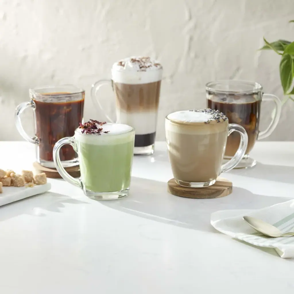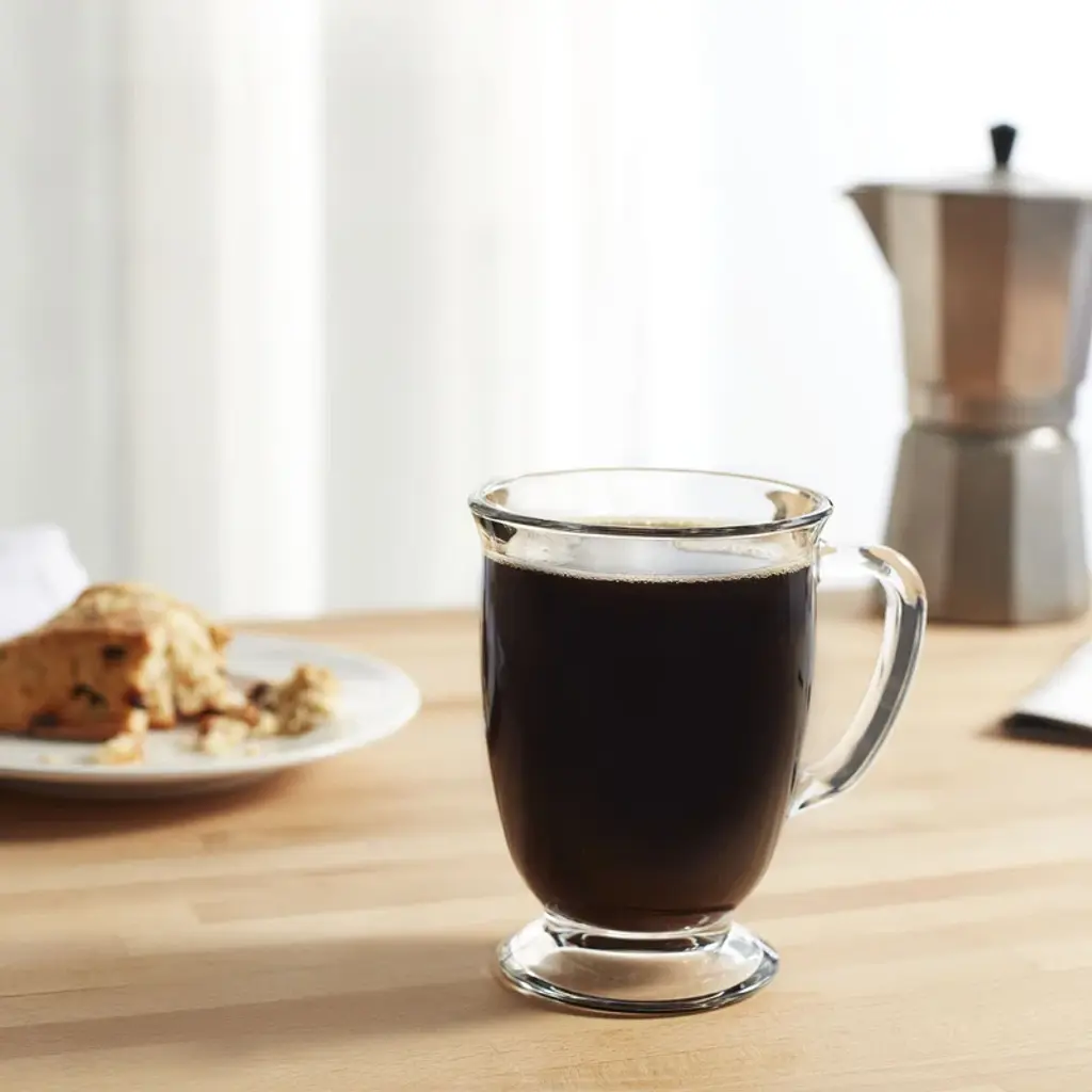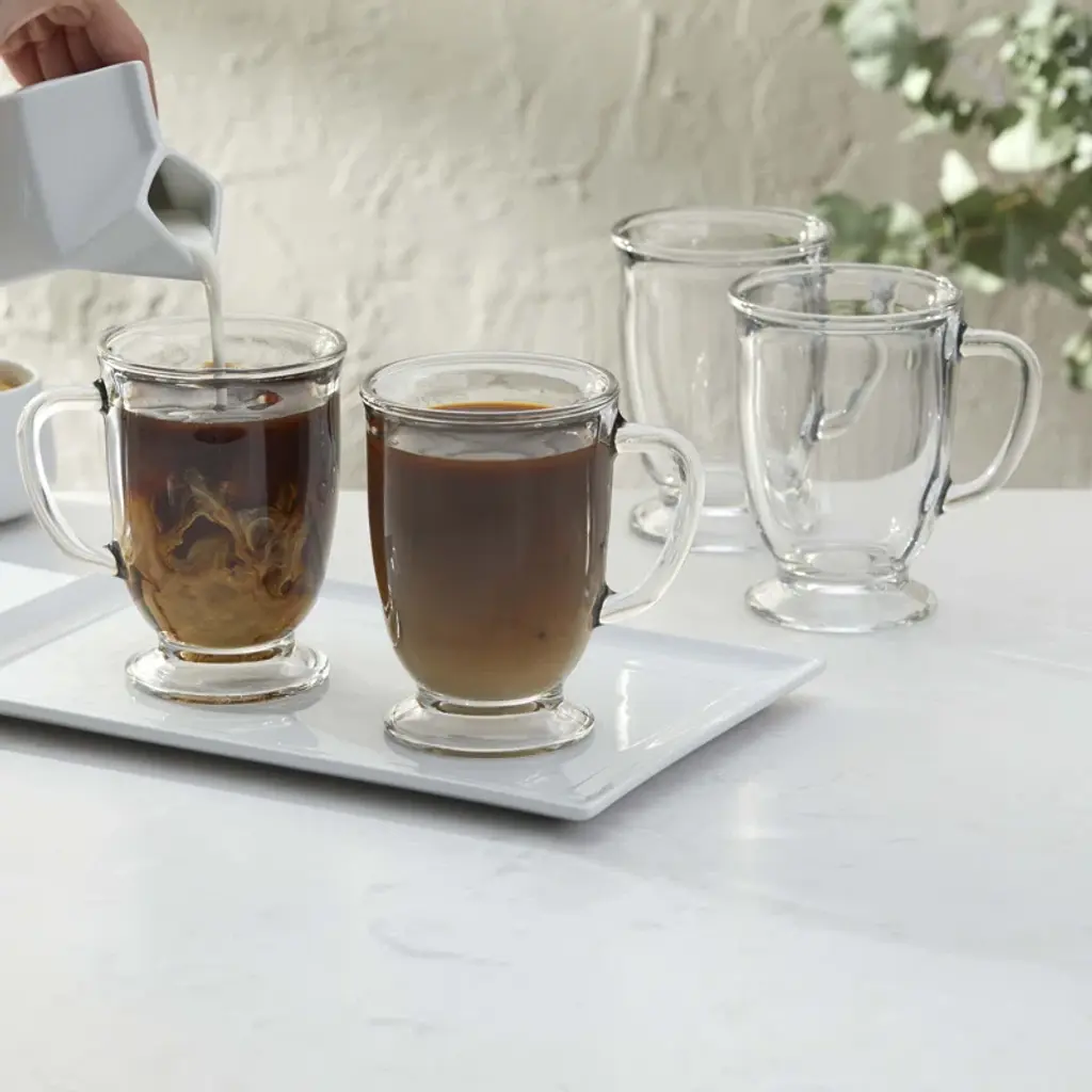Libbey Set of 6 Glass Latte Mugs: You know as well as any host—the meal isn’t over until it’s truly over, and neither is the party, making our classic tea glasses essential for those lingering moments. Sometimes, a little pick-me-up is exactly what your guests need to round out an evening or elevate a casual brunch, and all you need is a shot of brew in our charming clear coffee glass. The clear mugs set of 6 are beautifully shaped with a rounded body and a sturdy footed base, ensuring this glass coffee cup fits comfortably in any hand, making them perfect for serving guests. The classic silhouette offers a timeless feel, while the design of this clear coffee cup set beautifully showcases the rich hues of your favorite coffee, tea, or espresso. Perfect for stylish entertaining or everyday use, this large coffee mug set brings elegance and functionality to your table, enhancing any occasion. This tall coffee mugs set includes six 16-ounce glass cappuccino cups , each measuring 5.14 inches in diameter and 5.3 inches in height, providing ample serving for your guests. Crafted from premium glass, these transparent big mugs are durable and dishwasher-safe for quick, easy cleanup after any gathering. However, this clear glass mug is not microwave-safe and is best used with warm liquids only—not hot—to help preserve their charm and longevity, ensuring they remain a staple for your hosting needs. Add these lightweight coffee mugs to your kitchen collection and make every sip a sophisticated experience for you and your guests.