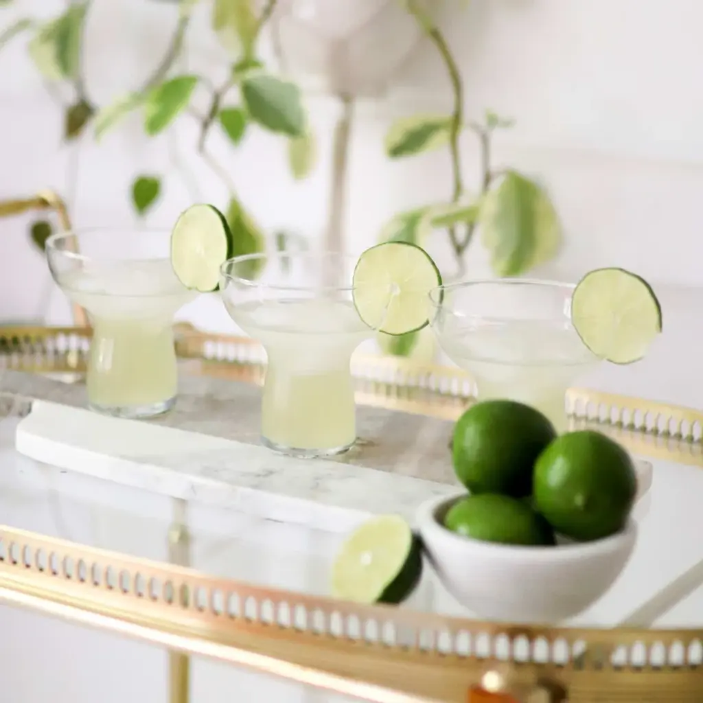 Libbey Margarita Glass Set of 6: Our fun cocktail glasses are the perfect blend of sophistication and casual elegance for your entertaining needs! Elevate your margarita experience with this set of six modern, clear, unique glasses designed for both style and functionality. Crafted with a unique design and a wide rim, these margarita glass sets not only showcase your favorite Mexican drinking glasses with a touch of class but also add a touch of flair to your beverage and dessert presentations. The 10.25-ounce capacity of this Mexican margarita set ensures just the right amount for a refreshing drink. Designed for convenience, the margarita gift set and the lightweight nature of these cosmo glasses set of 6 make them easy to carry without the worry of spills or breakage. The shallow bowl of the Mexican glasses for margarita enhances the overall experience, allowing you to savor every sip. Safety is a top priority, and our stemless cocktail glasses set of 6 is made from BPA-free glass, ensuring a safe and enjoyable drinking experience for you and your guests. Whether you're hosting an indoor dinner party or an outdoor gathering, these fancy cocktail glasses are perfect for any occasion. Cleaning up your Mexican glass set is a breeze. With proper care, this unique drinkware will remain a staple in your glassware collection for years to come - perfect for margarita gifts for women to enjoy with friends and family.