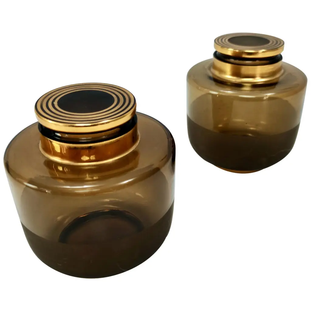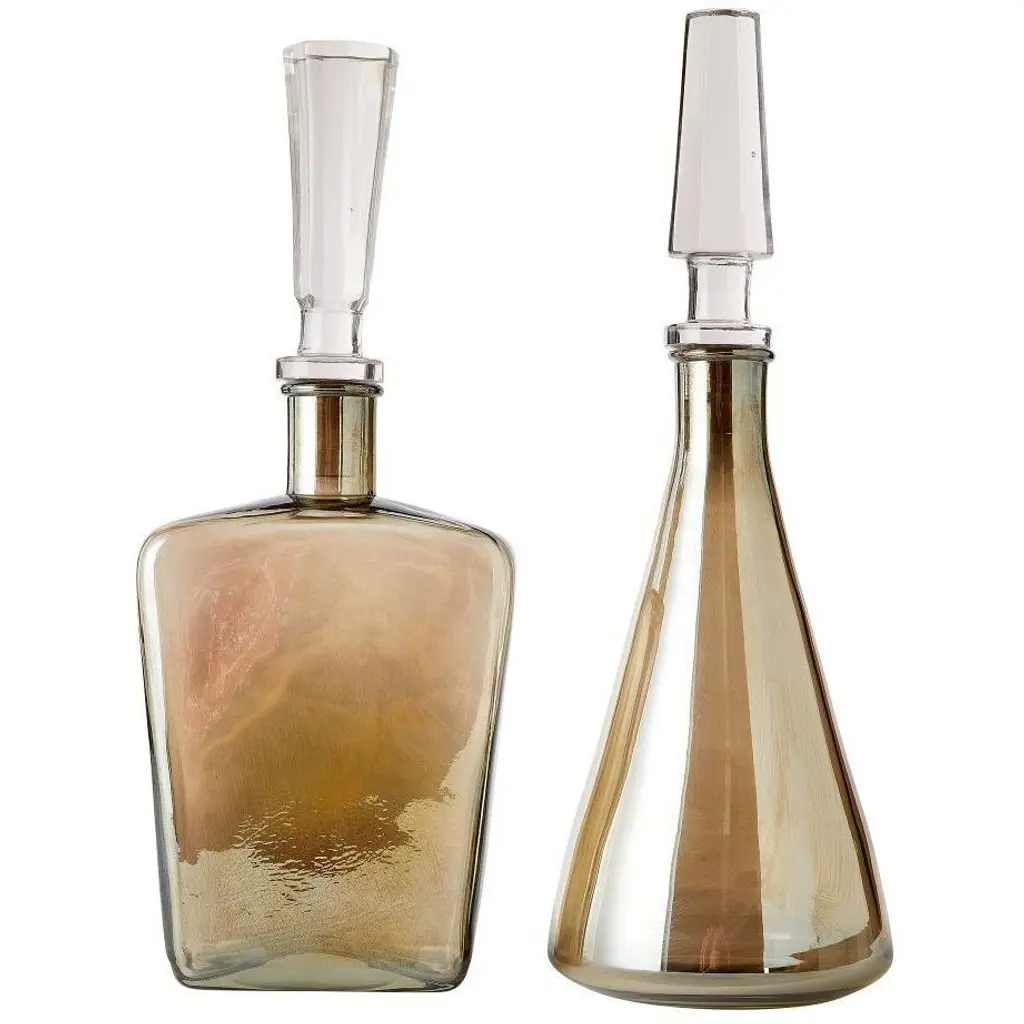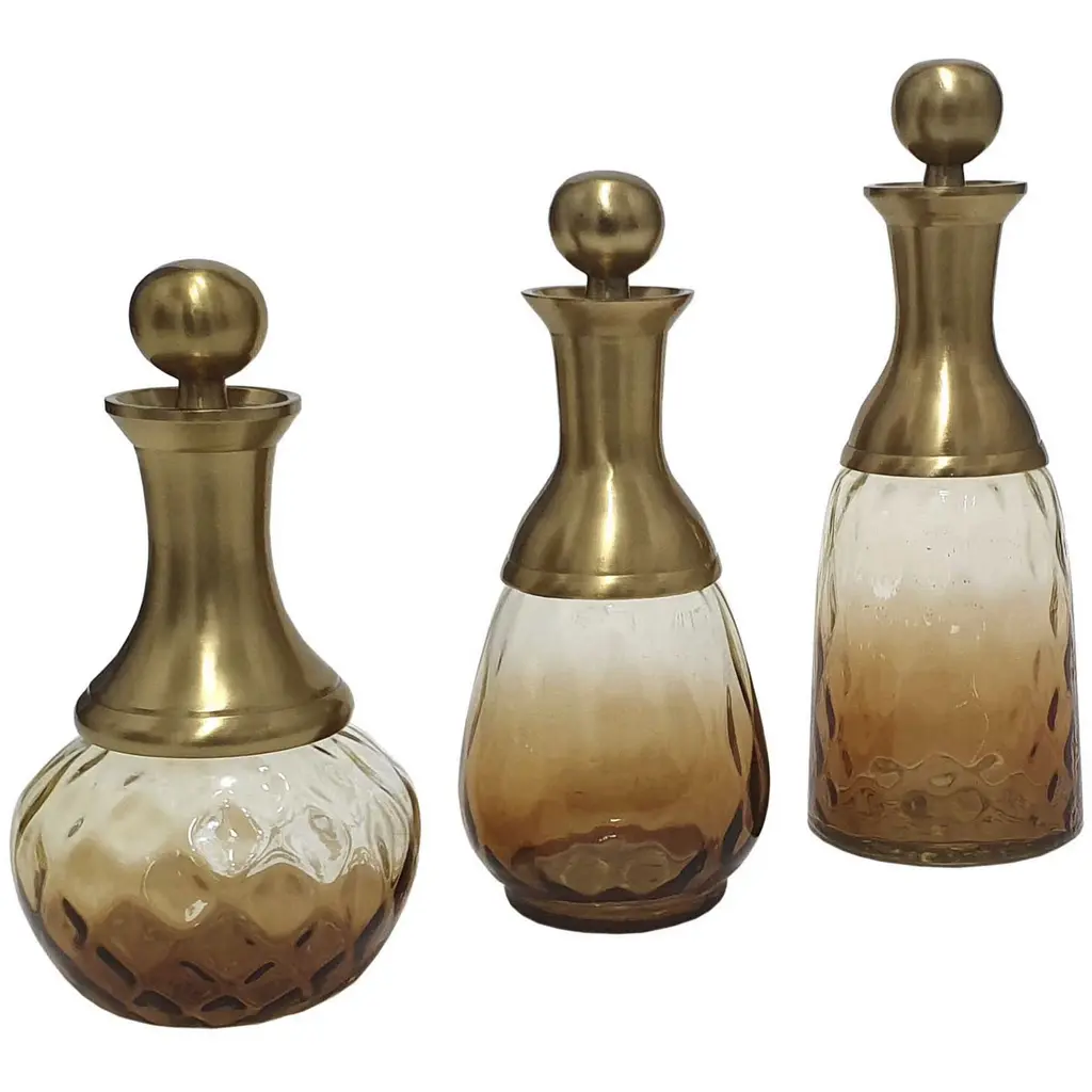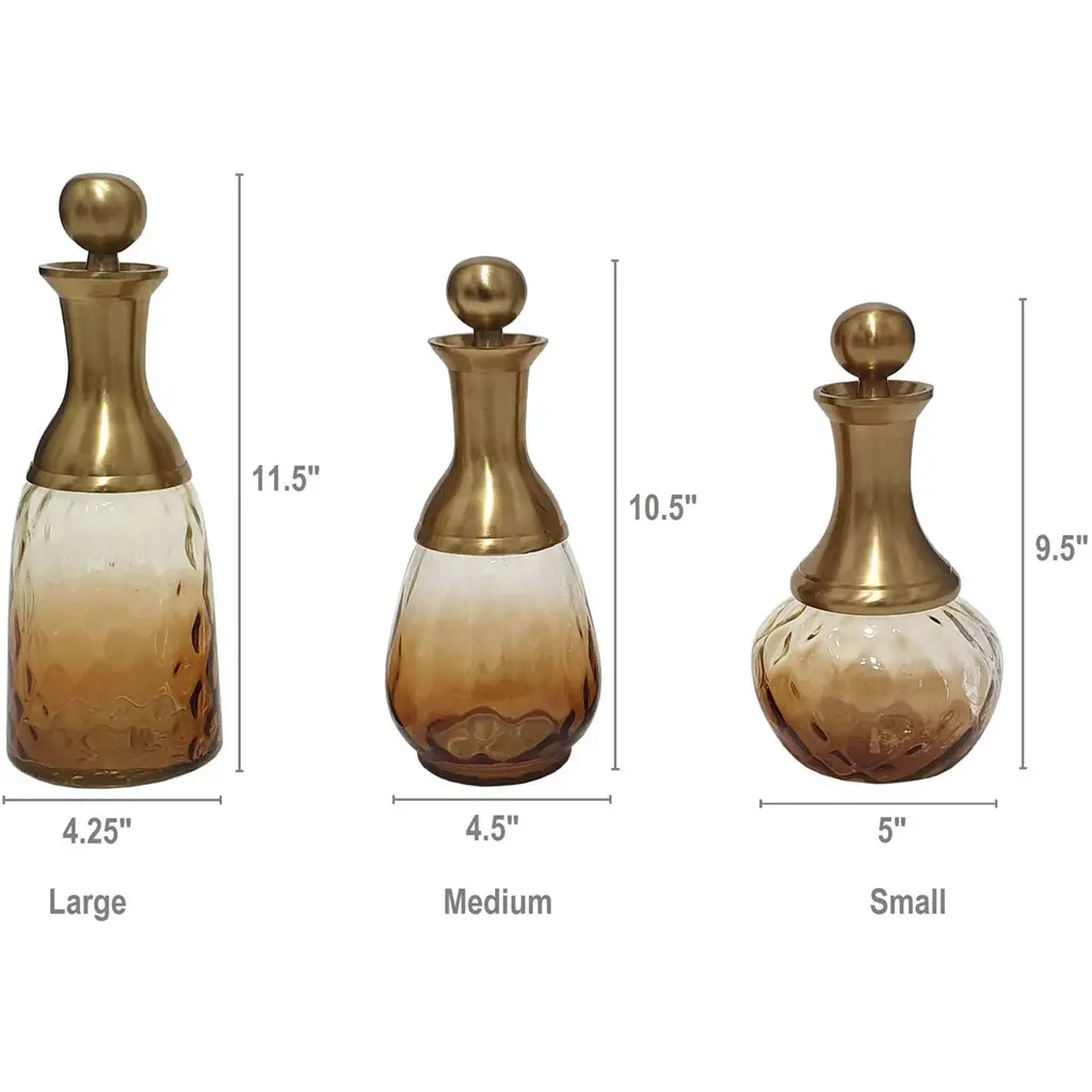 Round out your home's look with a set of 3 lidded bottles. This trio of bottles are made from rich glass/aluminum and sport an ombre colored glass finish. Use them to decorate together or as standalone pieces in your home or office spaces.