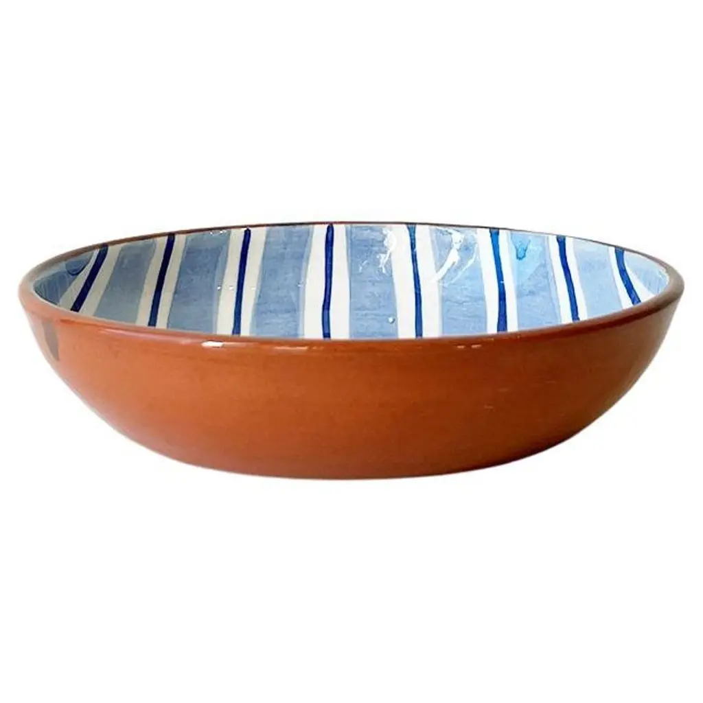 The Lido Dessert Plate, Set of 4 from Zafferano America, adds a tasteful touch to your table with each piece's gorgeous, glossy surfaces offering subtle distinctiveness. The contrasting colors draw the eye, handmade and decorated in Italy from microwave and dishwasher-safe stoneware. Federico de Majo designed each bespoke plate to show off a mix of artisanal charm and colorful character, with individual imperfections on each pattern adding soulful style.