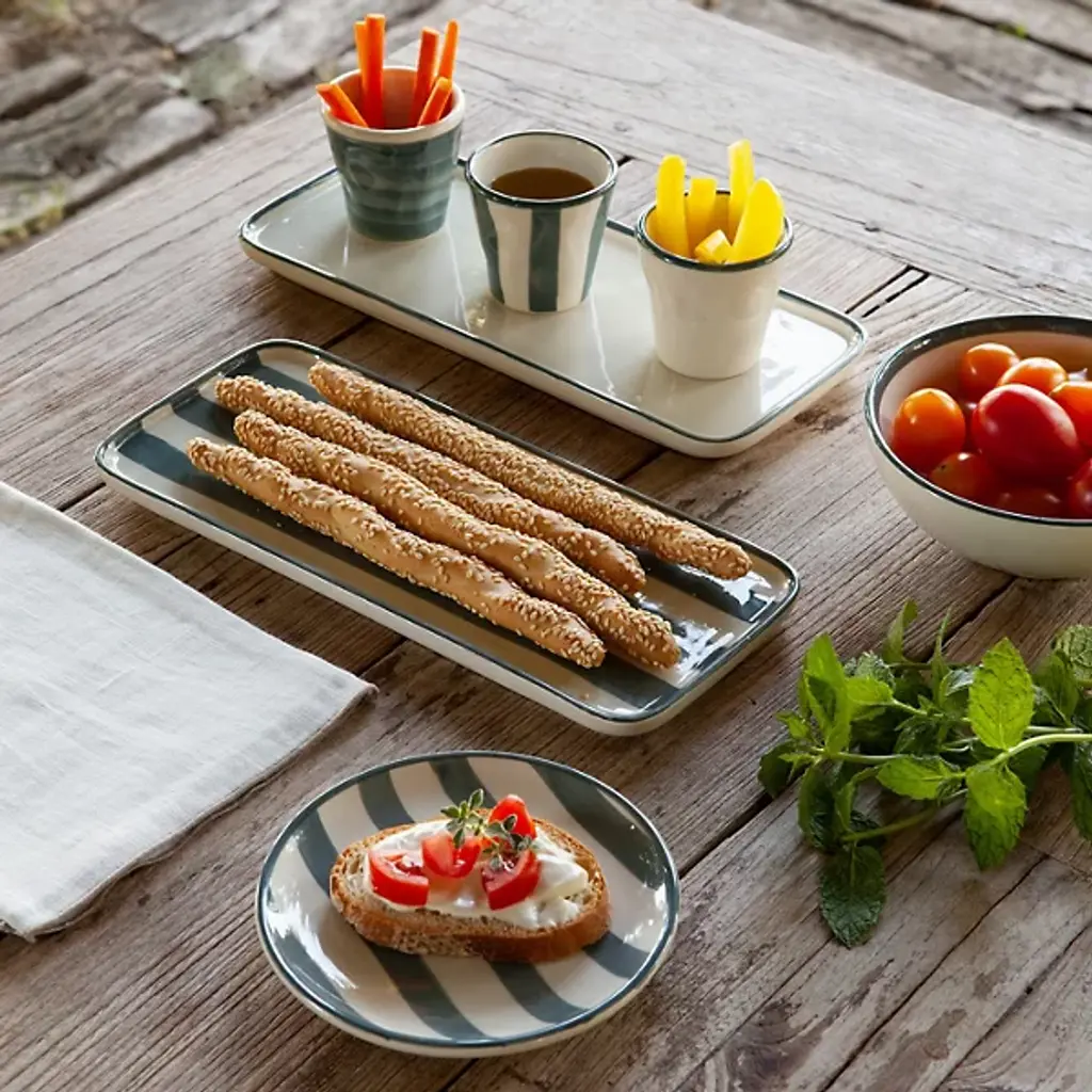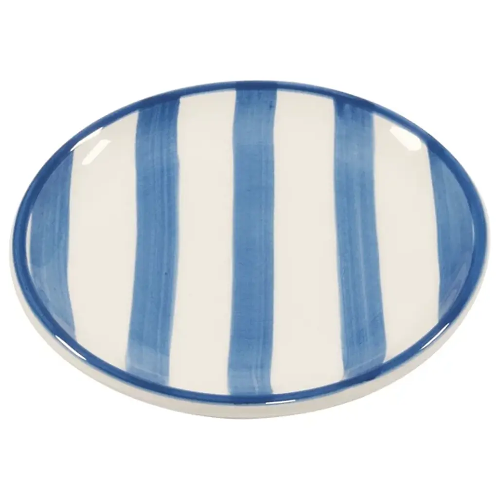 The Lido Dessert Plate, Set of 4 from Zafferano America, adds a tasteful touch to your table with each piece's gorgeous, glossy surfaces offering subtle distinctiveness. The contrasting colors draw the eye, handmade and decorated in Italy from microwave and dishwasher-safe stoneware. Federico de Majo designed each bespoke plate to show off a mix of artisanal charm and colorful character, with individual imperfections on each pattern adding soulful style.