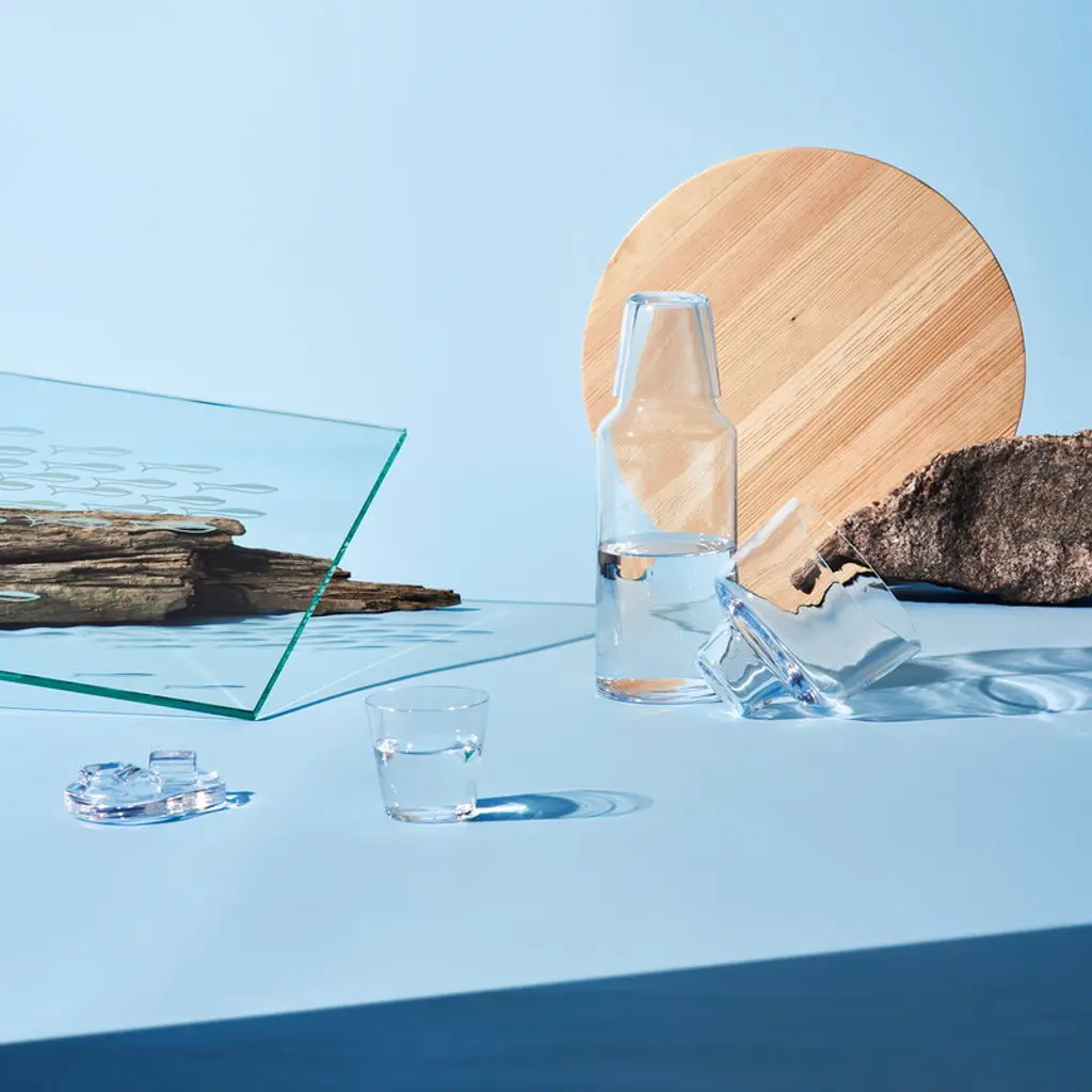 Designed by Harri Koskinen, the Lighthouse Island tableware set brings a fresh breeze and simplistic forms to the table setting. The set consists of a glass carafe, two tumblers, a glass dome, and a round pinewood tray. The glass parts have been mouth-blown in a wooden mold, giving them a beautiful vivid surface. The glass items have been manufactured by the Finnish glass studio Mafka & Alakoski, and the wooden tray by carpenter Arto Sillanpää. 40 euros of the proceeds will go directly to the Unique Archipelago Sea operation. Finnish Design Shop’s Archipelago Sea collection resulted from an initiative of the Unique Archipelago Sea (Ainutlaatuinen Saaristomeri) operation. Well-known Finnish designers have contributed to this unique collection aimed at protecting Finland’s Archipelago Sea. Consisting of more than 41,000 islands, the Archipelago Sea is one of the richest natural areas in Finland in terms of biodiversity, but continuous eutrophication is a serious threat to its future. Part of the collection's proceeds will be directed to a program for recycling nutrients in the Archipelago Sea. All products are handmade in Finland and only available at Finnish Design Shop.